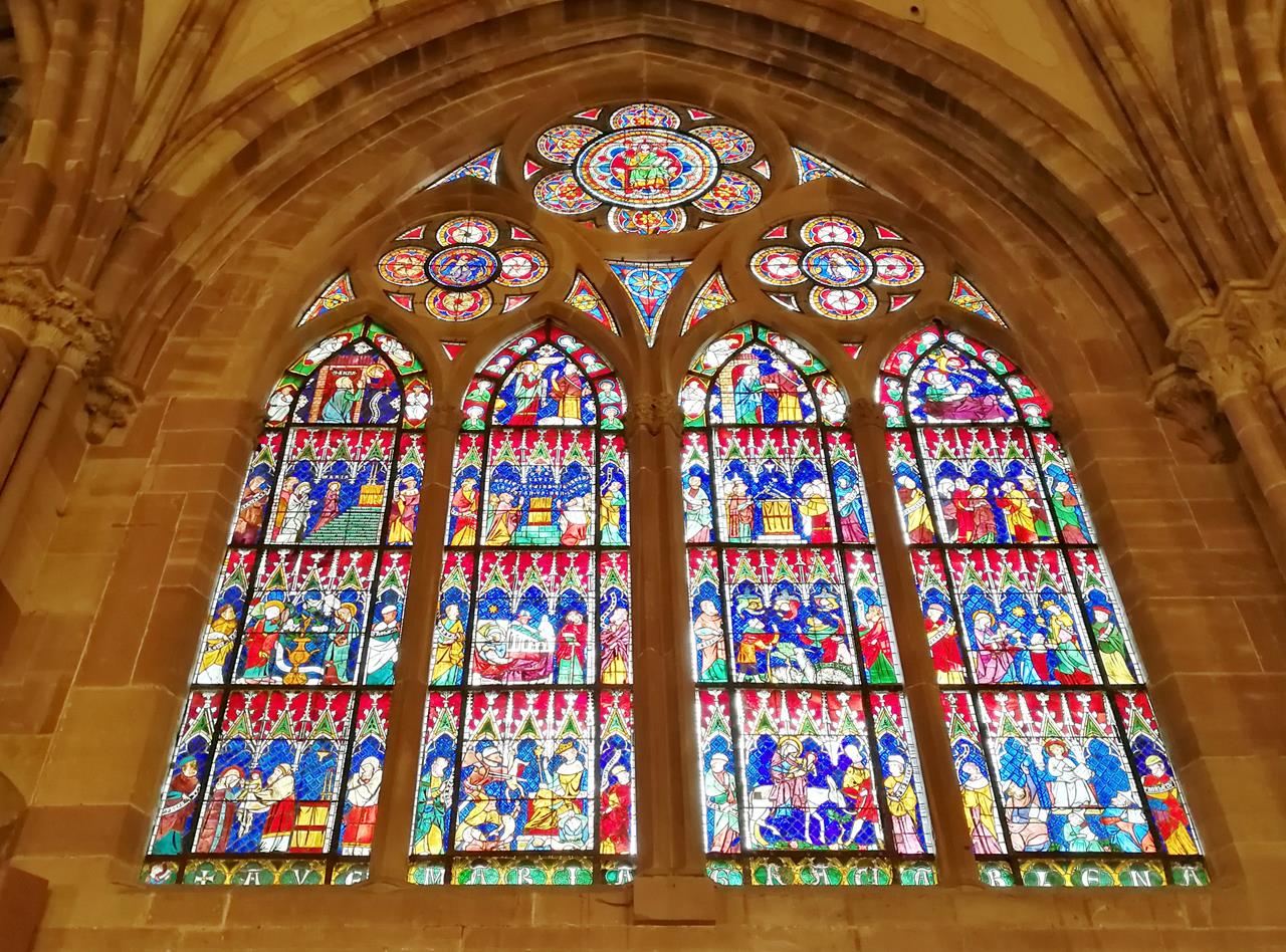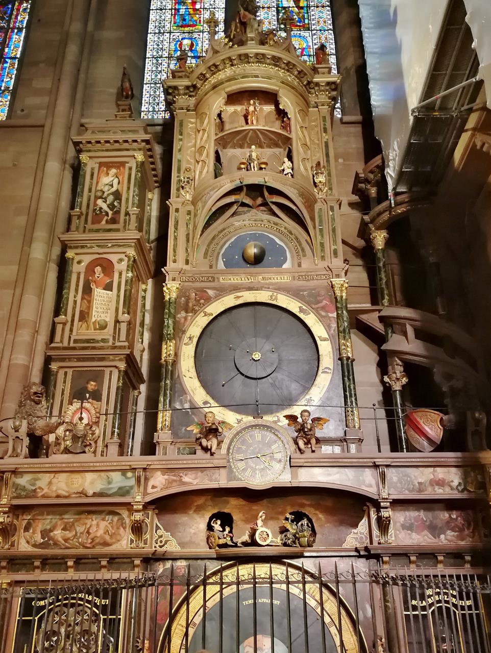 Zu seinen berühmtesten Elementen im Innenraum gehören die Astronomische Uhr, der sogenannte „Engelspfeiler“, die Schwalbennestorgel sowie die großen bunten Bleiglasfenster aus dem 14. Jahrhundert.
