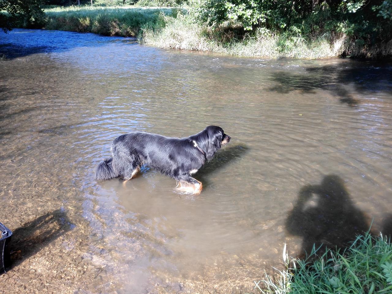 Doxi genießt es sichtlich, immer wieder in das flache Wasser zu steigen, zu trinken und ein angenehm kühlendes Fußbad zu nehmen.