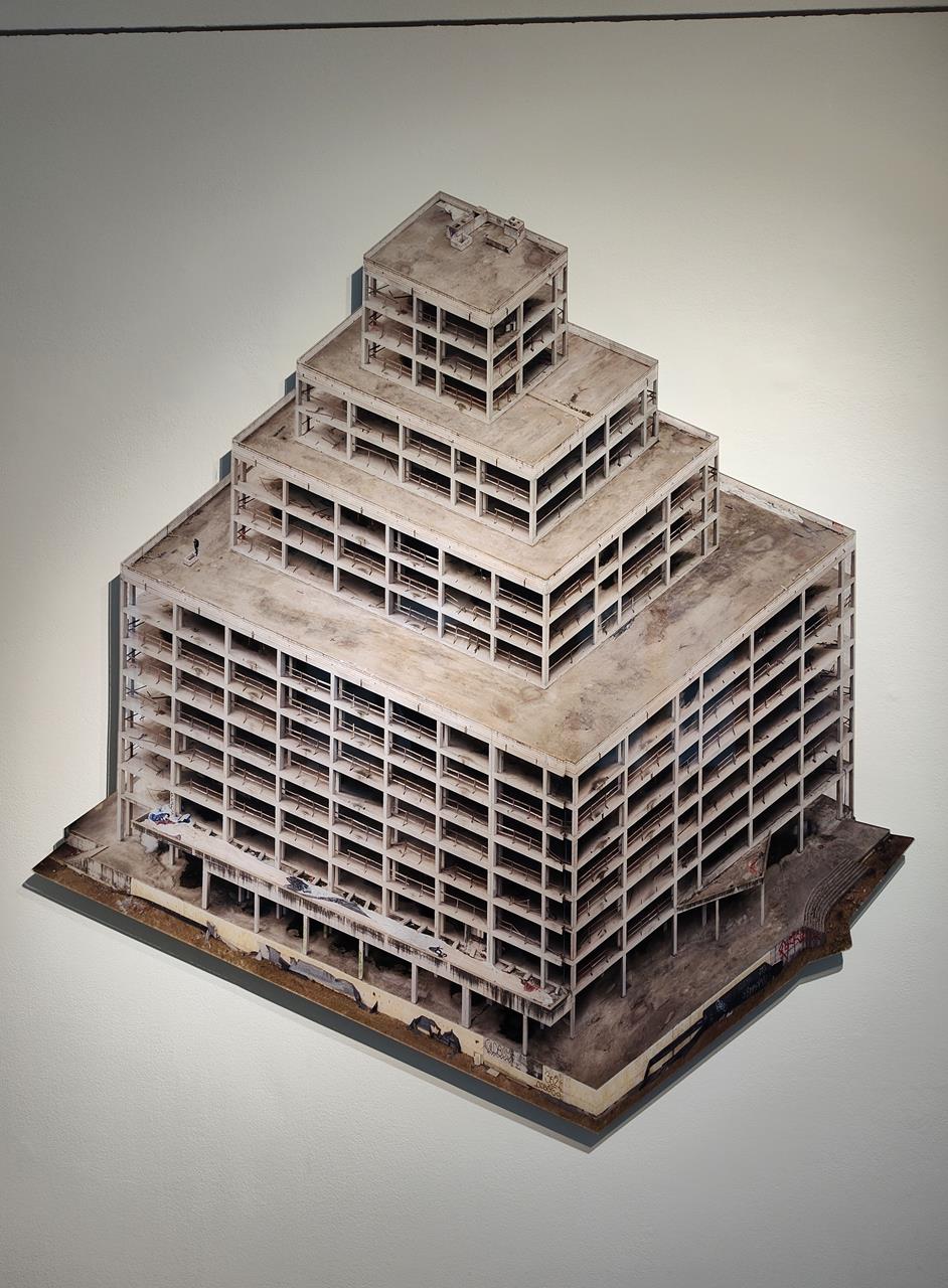 Der Titel der Düsseldorf Ausstellung lautet „Photography Degrowth“. Der Künstler versammelt darin eine Reihe von ikonischen Fotografien und Objekten. Jedes der gezeigten Werke bezieht sich in tiefsinniger Weise auf die Idee des Postwachstums und kreist dabei um Architektur.