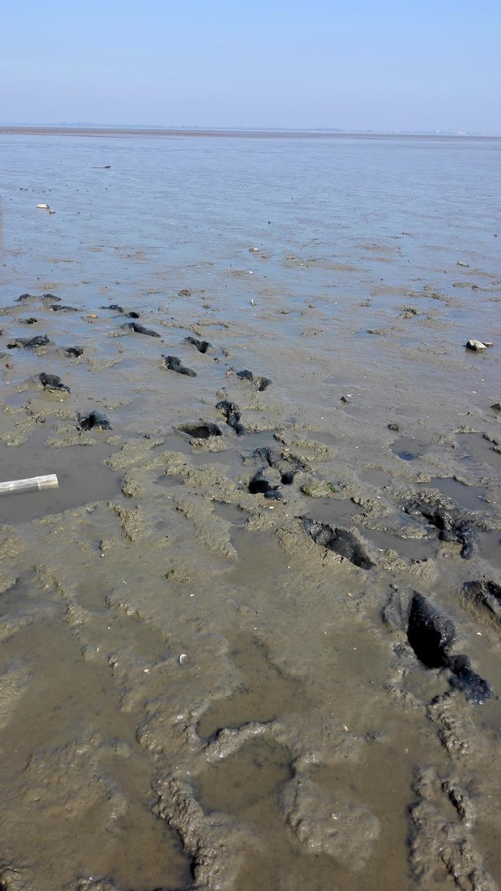Einmal die Füße ins Schlickwatt getaucht, schon klebt alles.