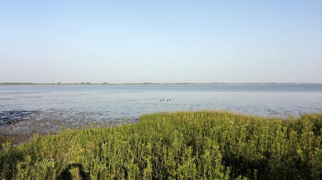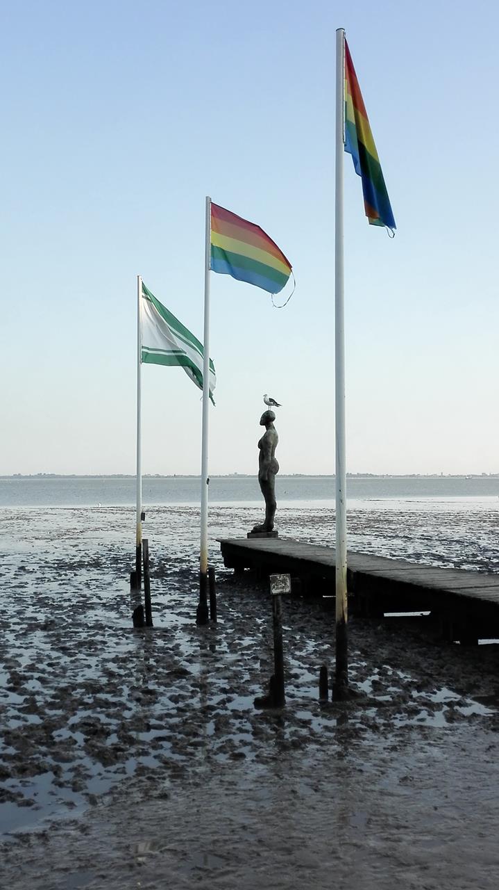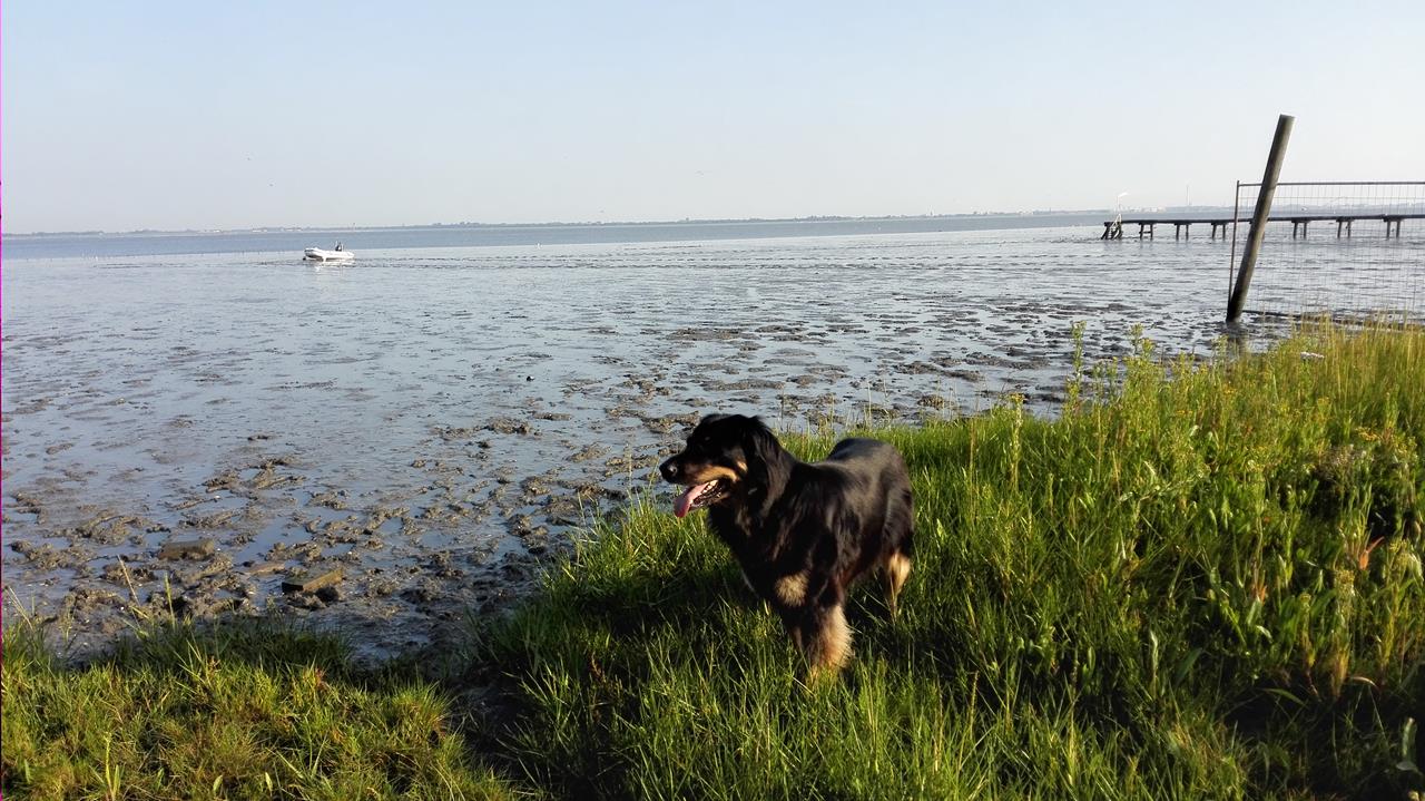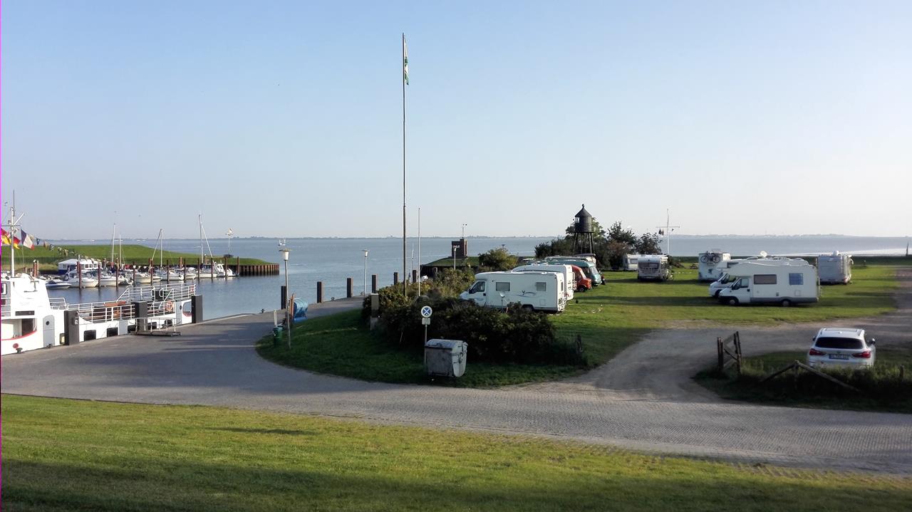 Danach wurde Dangast an flutgeschützter Stelle auf dem Südhang eines eiszeitlichen Geestrückens neu aufgebaut. Dank dieser Lage gehört der Ort heute zu den wenigen Plätzen an der deutschen Nordseeküste, die auf einen Schutzdeich verzichten können. Dies ermöglicht einen deichlosen Meerblick, der zu den wichtigsten Attraktionen des Ortes zählt.Wir stehen auf dem Womo-Stellplatz am kleinen Hafen von Dangast direkt am Hundestrand und haben das Glück, einen Platz in der ersten Reihe zu ergattern. Aus dem Fenster heraus blicken wir auf den Jadebusen und können verfolgen, wie dieser im Laufe des Tages erst leerläuft und sich dann wieder füllt.