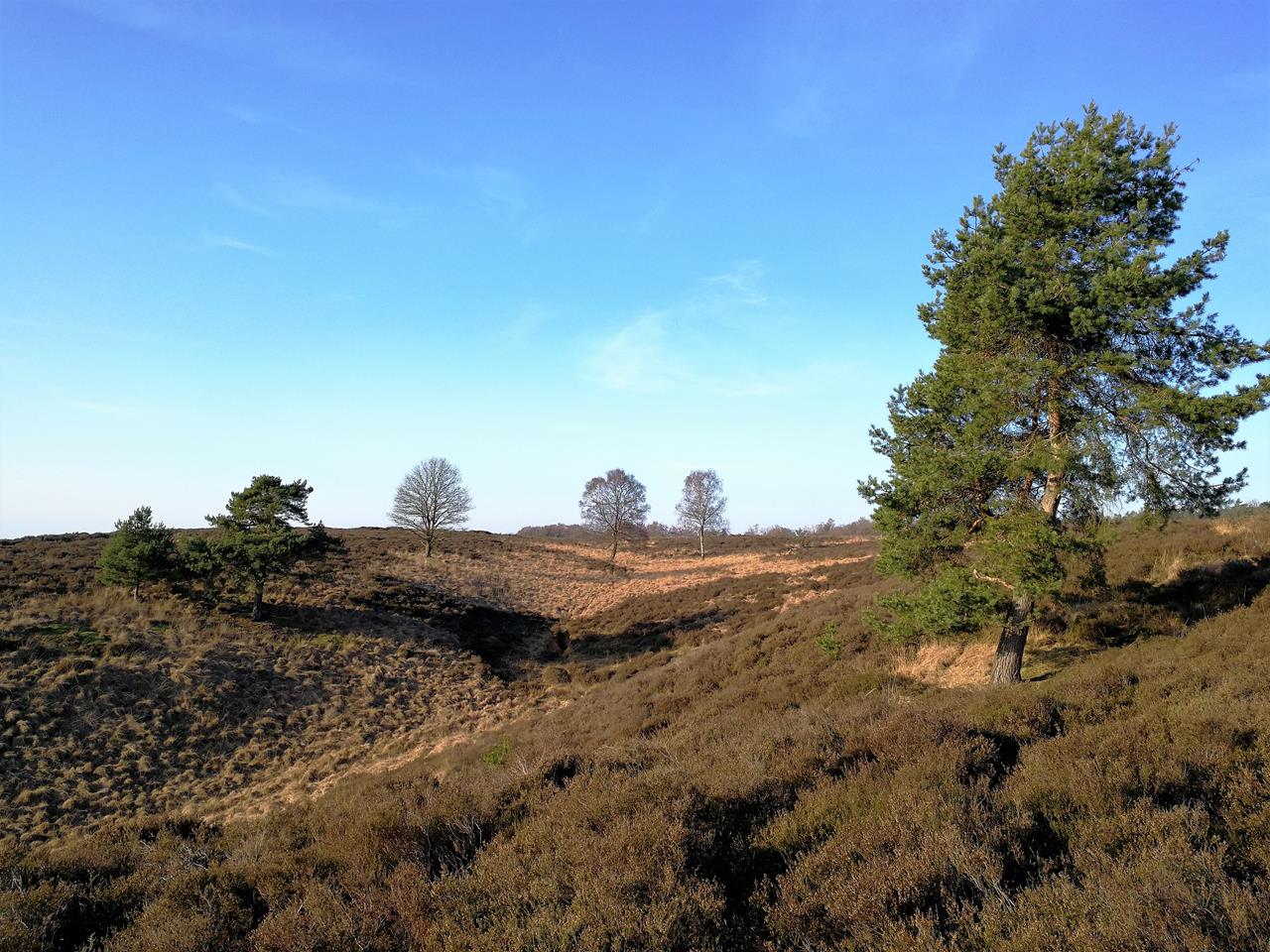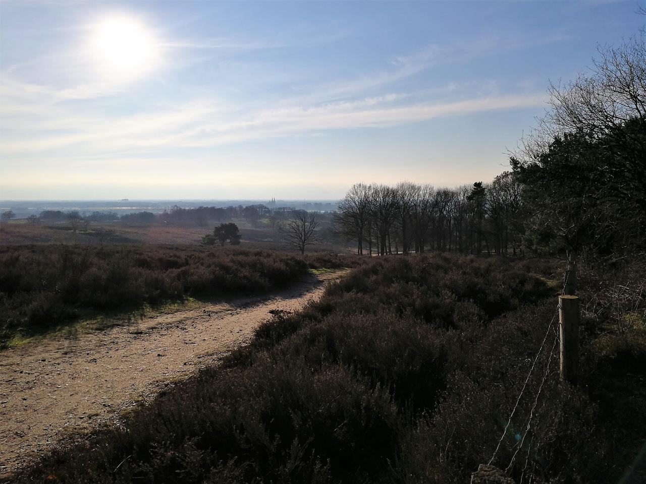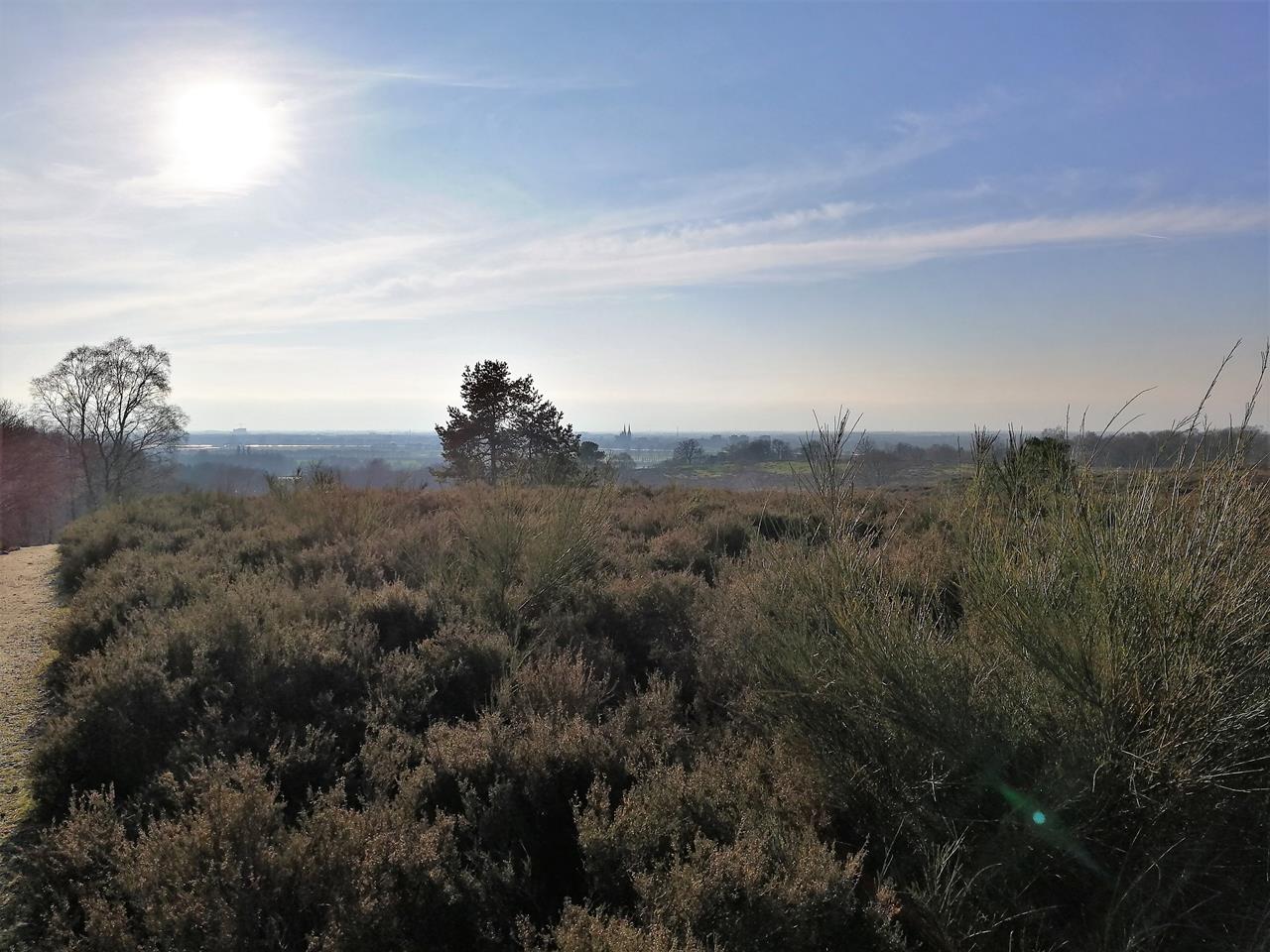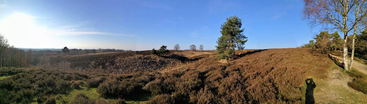 Nach unserer Wanderung an der Maas bei Cuijk drehen wir noch eine Runde durch die angrenzende Mookerheide. Das hügelige Gelände erhebt sich östlich der Maas über die flache Landschaft, sodass sich ein toller Blick hinunter nach Cuijk und die Wasserflächen bei Plasmolen ergibt.