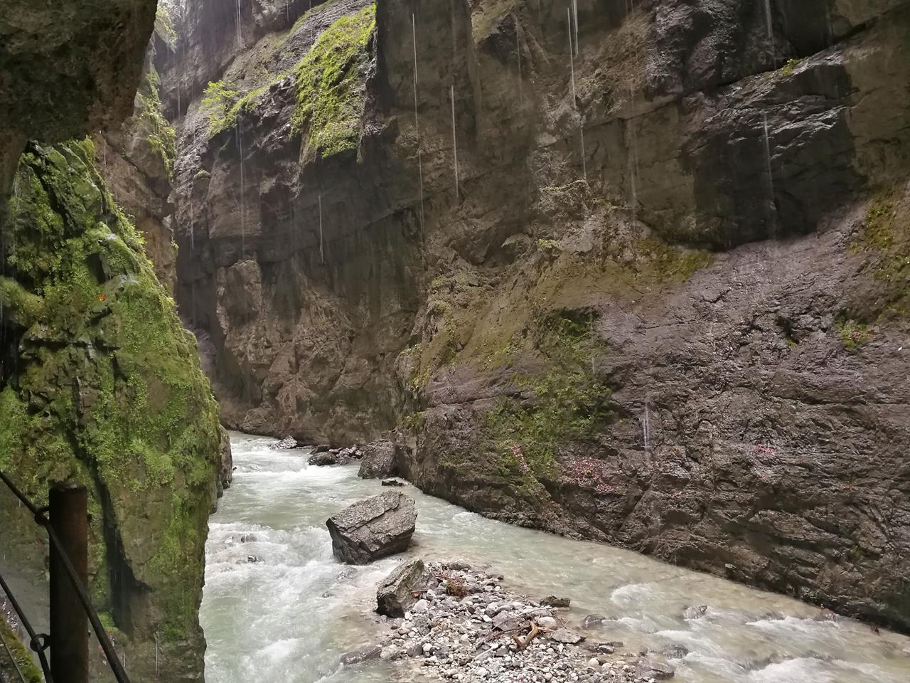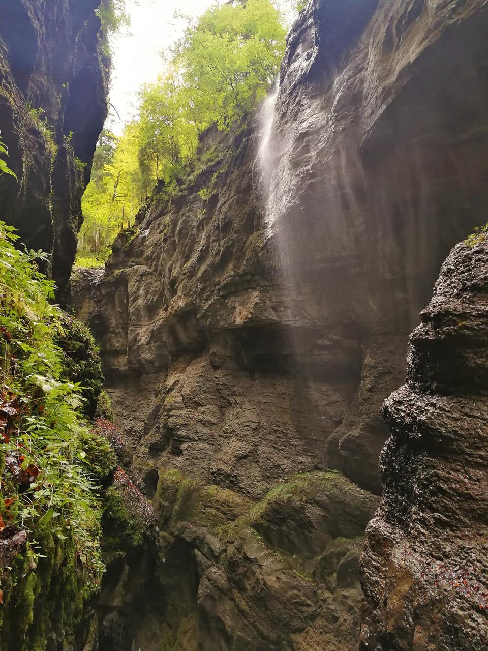 Mehrfach schon habe ich TV-Dokumentationen über die Klamm gesehen, aber das Naturschauspiel live zu erleben, ist doch noch etwas anderes. Die Wildheit des Wassers, die Geräuschkulisse und der Regen, den Bäche von oben in die Klamm herabstürzen lassen, machen die Durchquerung zu einem richtigen Erlebnis. Gut, dass wir dafür so früh aufgestanden sind.