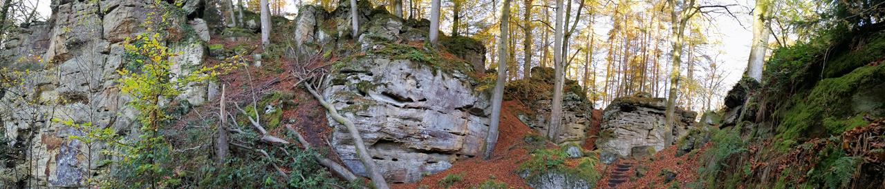 Die wild zerklüftete Schlucht am Ostrand des Ferschweiler Plateaus oberhalb des Ortes Irrel entstand am Ende der letzten Eiszeit vor rund 12.000 Jahren infolge einer gewaltigen Serie von Felsstürzen.
