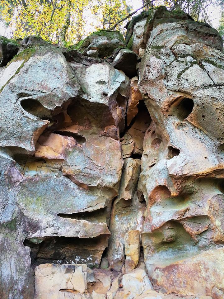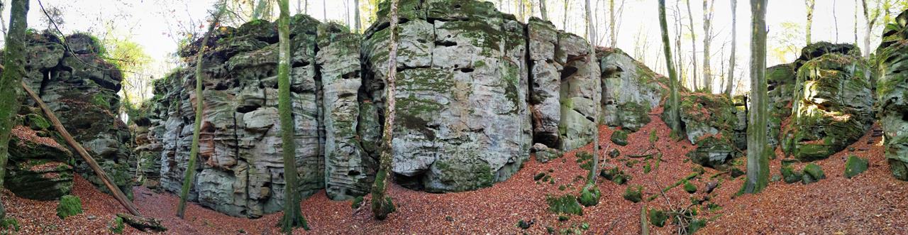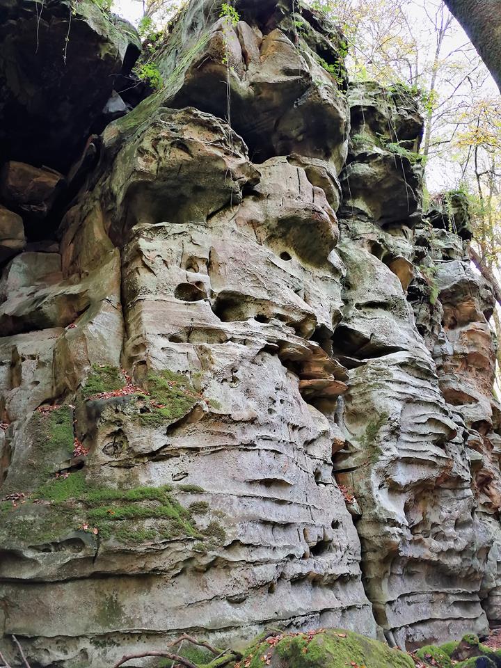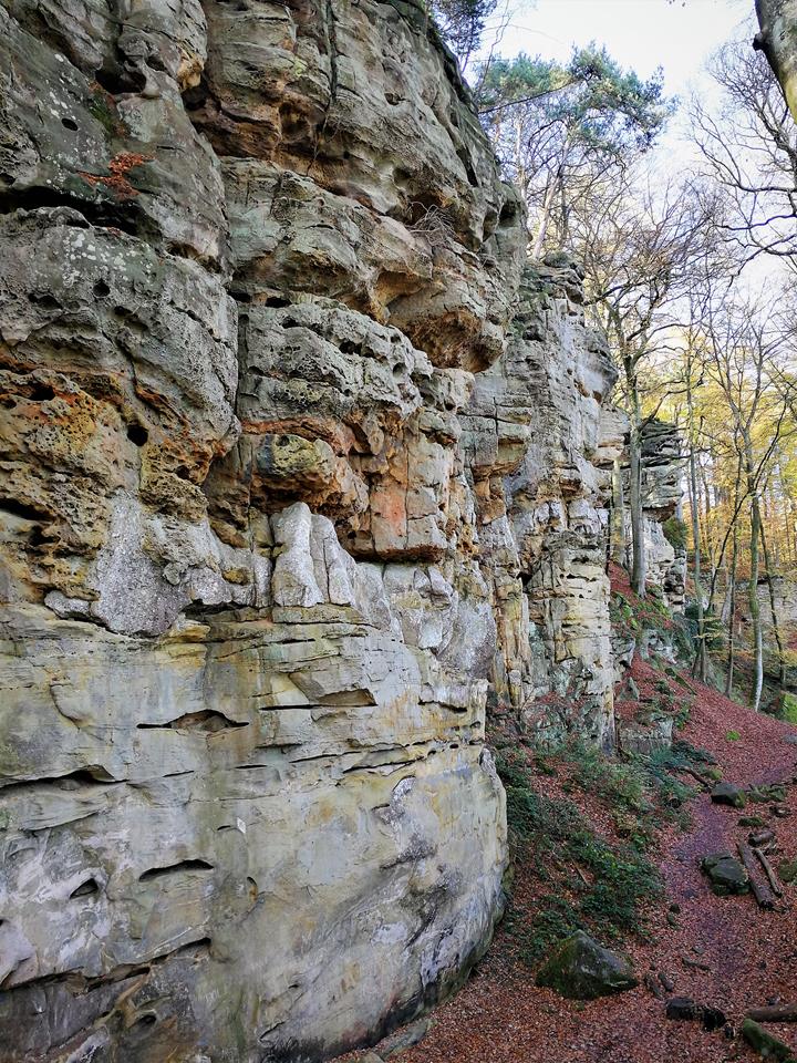 Während die Sandsteinschichten durch Regen zunehmend verwitterten, wurde ihre Basis mehr und mehr unterschnitten. Der ständige Wechsel von Frost- und Tauperioden am Ende der letzten Eiszeit führte dann zu massiven Frostsprengungen. Eine Vielzahl von Felsstürzen waren die Folge.