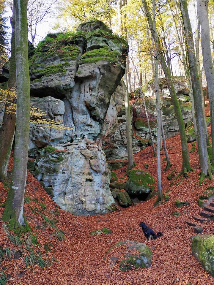 Die fast 30 Meter tiefe Teufelsschlucht ist ein Produkt dieser Felsstürze und an einigen Stellen gerade einmal einen Meter breit. Handläufe und Treppenstufen ermöglichen den Besuchern den Weg durch die Schlucht. Es ist ein ständiges auf und ab auf schmalen Pfaden. An einigen Stellen muss man sich durch enge Spalten und Felslöcher zwängen. Das gibt es an keinem anderen Ort in der Eifel. Einfach faszinierend.