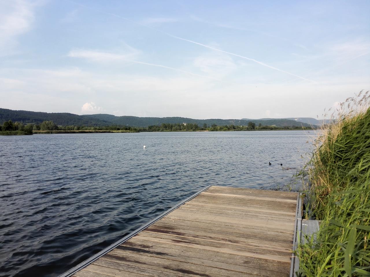 Doch ich habe Glück und finde nur wenige hundert Meter weiter an einem Seitenarm der Werra einen Schattenplatz auf einem kleinen öffentlichen und kostenlosen Parkplatz. Und hier, am Rande des Flusses, weht sogar ein leichter Wind.