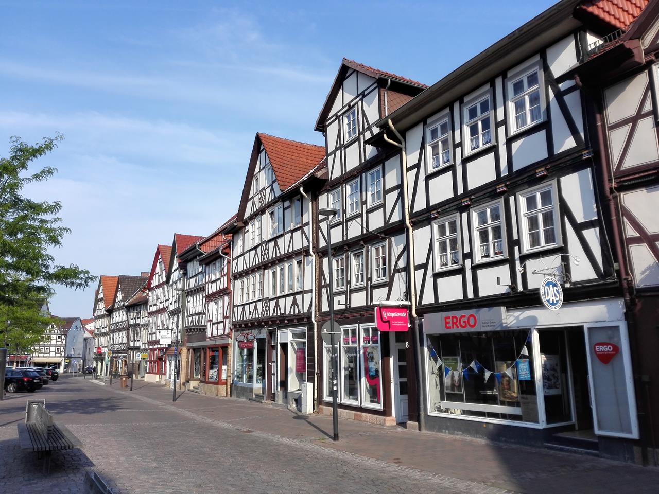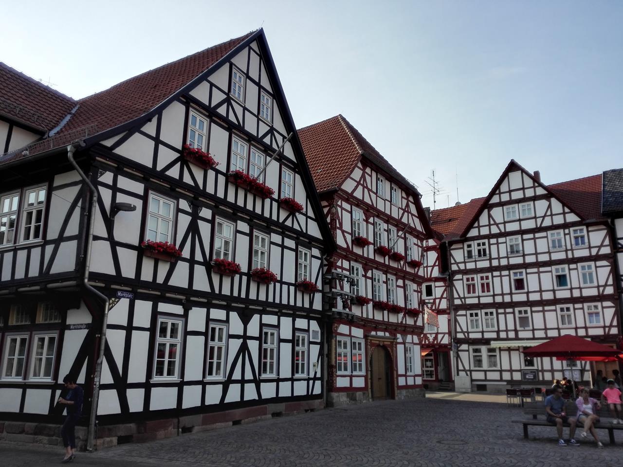 Die Stadt hat im Zweiten Weltkrieg nur wenig gelitten und verfügt deshalb viel historische Bausubstanz. Fast 1000 Fachwerkhäuser sollen es im Innenstadtbereich noch sein. Wie sich bald zeigt, sind nicht so viele Perlen darunter wie in Allendorf, aber es sind wirklich sehr sehr viele Fachwerkhäuser hier.