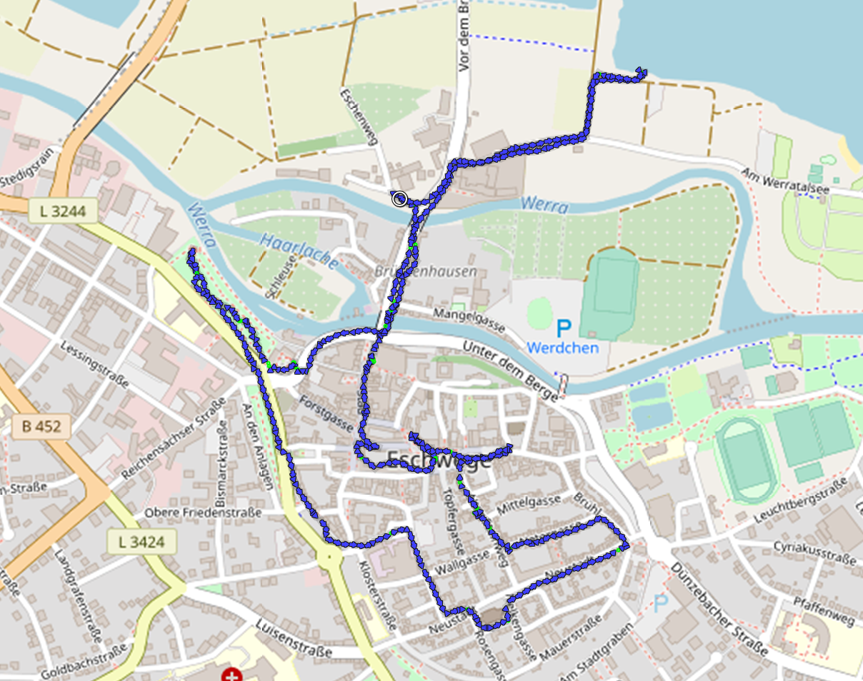 Als wir nach unserer Wanderung bei Bad Sooden-Allendorf im Ort keinen Schattenplatz für das Wohnmobil finden und die Temperatur im Inneren die 30-Grad-Marke erreicht, beschließe ich spontan, in das 20 Kilometer entfernte Eschwege weiterzufahren.