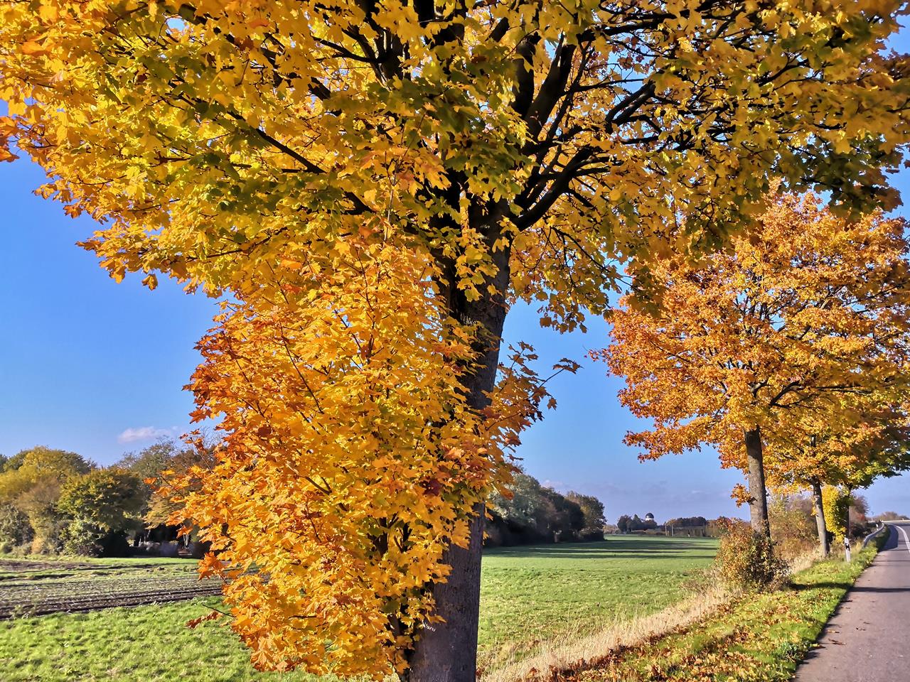 Und ich bin fündig geworden: an Straßen, in Parks und Grünflächen. Neben Rot ist auf meiner kleinen Herbstsafari allerdings auch die Farbe Orange erlaubt, wie die folgenden Aufnahmen zeigen.