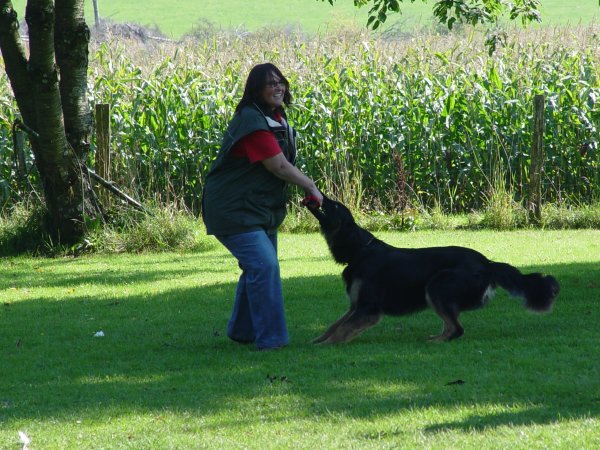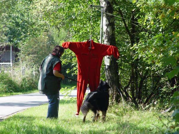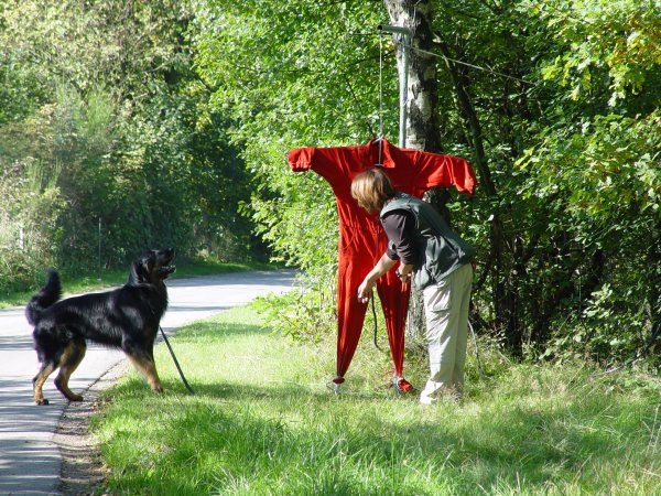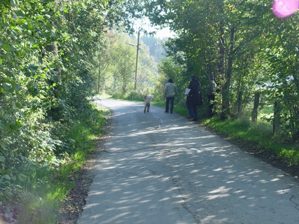 Fünf Hunde aus unserer Zucht sind am Start: Aaron aus dem A-Wurf stellt sich der Zuchttauglichkeitsprüfung, vier Geschwister aus dem B-Wurf der Jugendbeurteilung.Wie immer werden die Hunde ausgiebig hinsichtlich ihres Erscheinungsbildes beurteilt und entlang eines Spazierweges an sechs Stationen mit verschiedenen ungewohnten und reizintensiven Situationen konfrontiert, beispielsweise durch Schüsse oder einen Spaziergänger, der sich in verdächtiger Weise nähert.