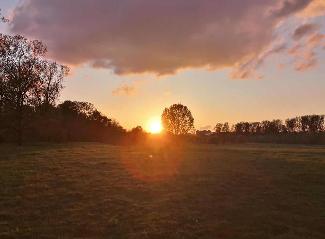 Da war sie endlich, die untergehende Sonne über dem Rheinpark Neuss. Aufgenommen aus der begehbaren Skulptur „N“.