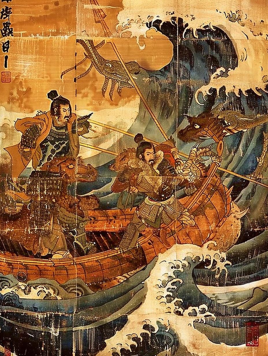 Neu aus der KI auf meiner Festplatte: Frisch imaginierte Bilder in der Art von Katsushika Hokusai (1760-1849).