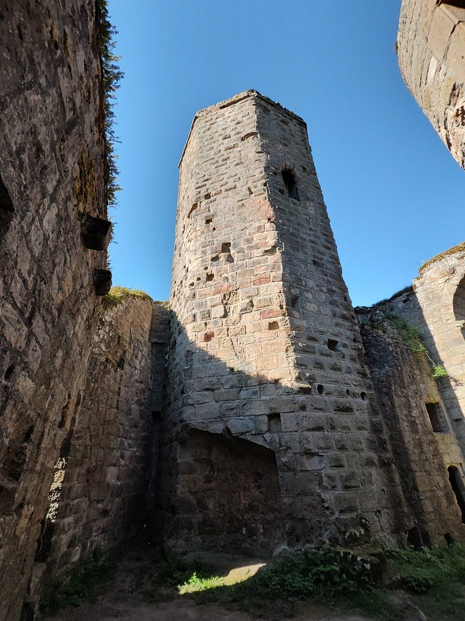 Na, komm, eine Pfälzer Burgruine geht noch. Weil es doch so viele davon gibt 🙂 Aber diese hier ist wirklich etwas Besonders. Als eine von ganz wenigen Burgen in Westeuropa hat Burg Gräfenstein einen siebeneckigen Bergfried.