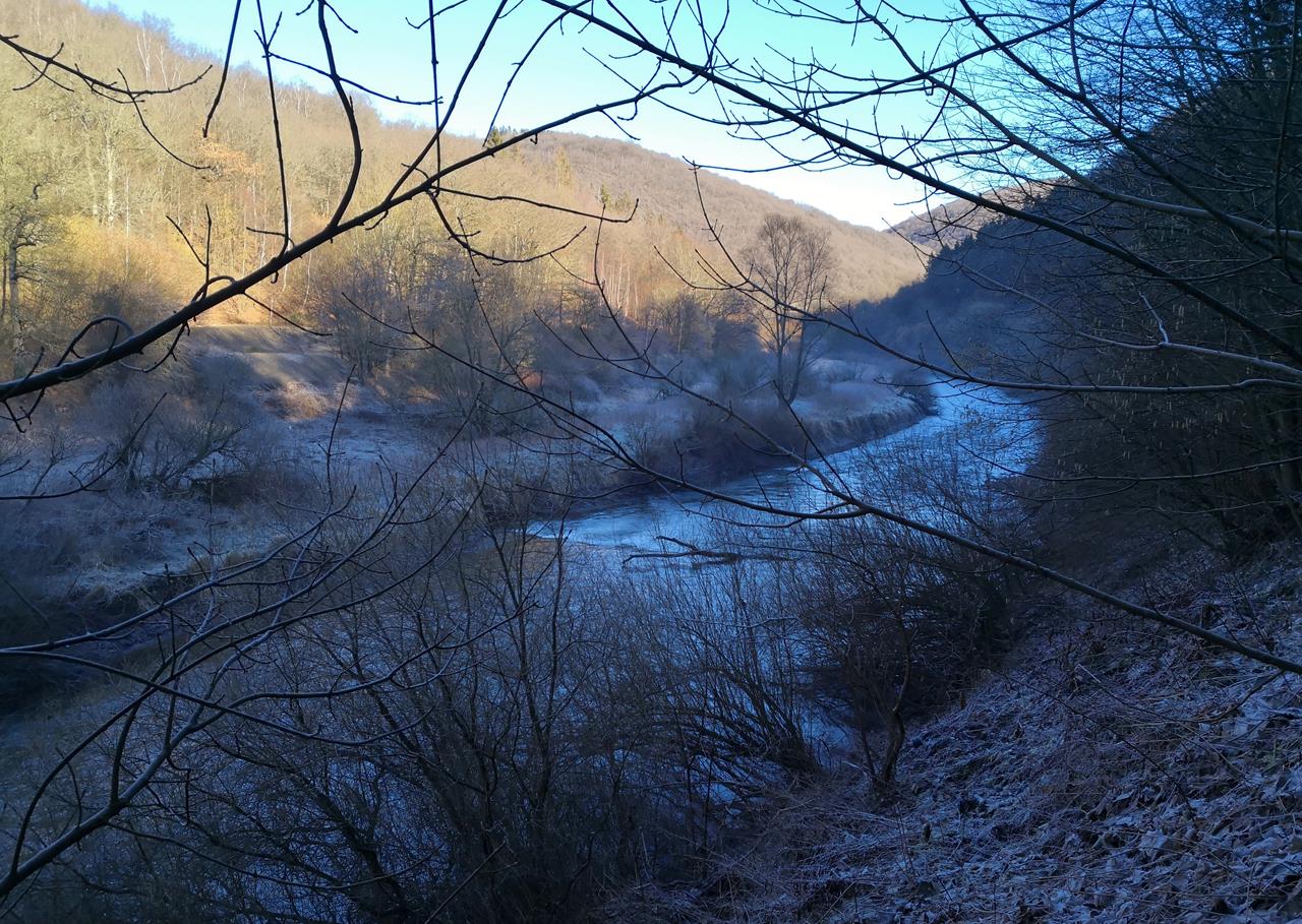 In den schattigen Uferzonen an der Urft hielt sich der Frost der Nacht noch bis in den Nachmittag. Doch auf dem sonnengetränkten Uferweg konnten wir bereits am Vormittag die dicken Jacken ausziehen. Herrlich war das, endlich einmal wieder einen ganzen Tag in der Sonne unterwegs zu sein. Ein wunderbarer Ausflug.
