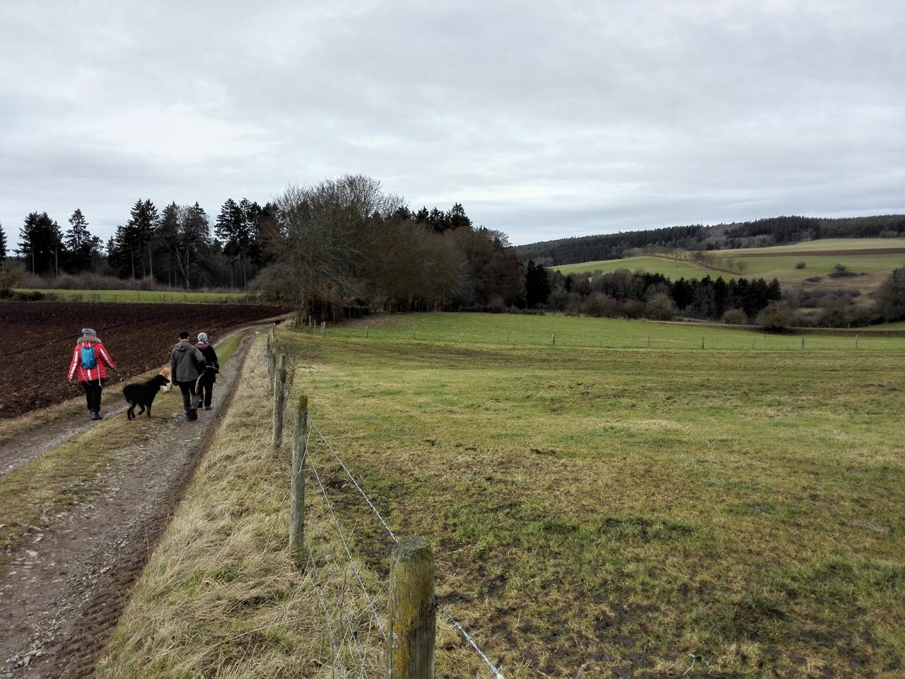 Heute eine schöne Eifelwanderung mit drei Hunden rund um das Kloster Steinfeld bei Kall in der Eifel. Wir starten am Bürgerhaus im Ortsteil Sötenich, verlassen bald den Ort und wandern über Felder weiter zu einem Steinbruch. Von dort geht es durch Wald hinab ins Kuttenbachtal.