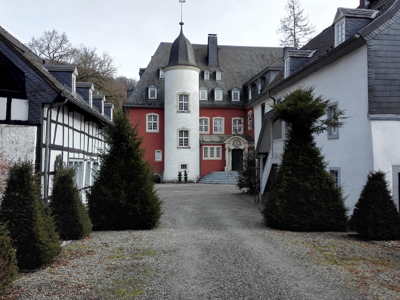 Weiter geht es hinab ins Urfttal, wo wir an einem schmucken Gutshaus die Bahnstrecke Köln-Trier und die Urft überqueren. Wenig entfernt befindet sich die Burg Dalbenden mit einem schönen Innenhof.