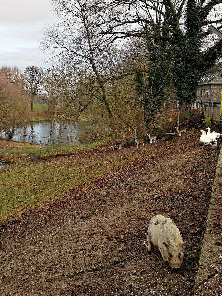 Durch den schönen Stadtpark geht es parallel zum „Konigingsweg“ hinunter in das Tal des Amstelbaches („Anstelerbeek“) in Richtung des hübschen Wasserschlosses Ehrenstein („Kasteel Erenstein „). Umgeben von einer Parklandschaft bildet das Schloss den südlichen Teil der sogenannten „grünen Lunge“ von Kerkrade.