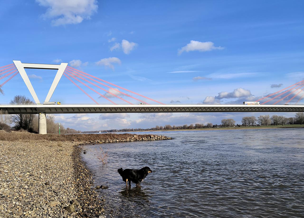 Zum ersten Mal seit bald einer Woche zeigt sich an diesem Dienstag-Mittag wieder die Sonne. Das nutzen wir für einen schönen Hundespaziergang am Rhein, rund 15 Kilometer von unserem Zuhause entfernt.