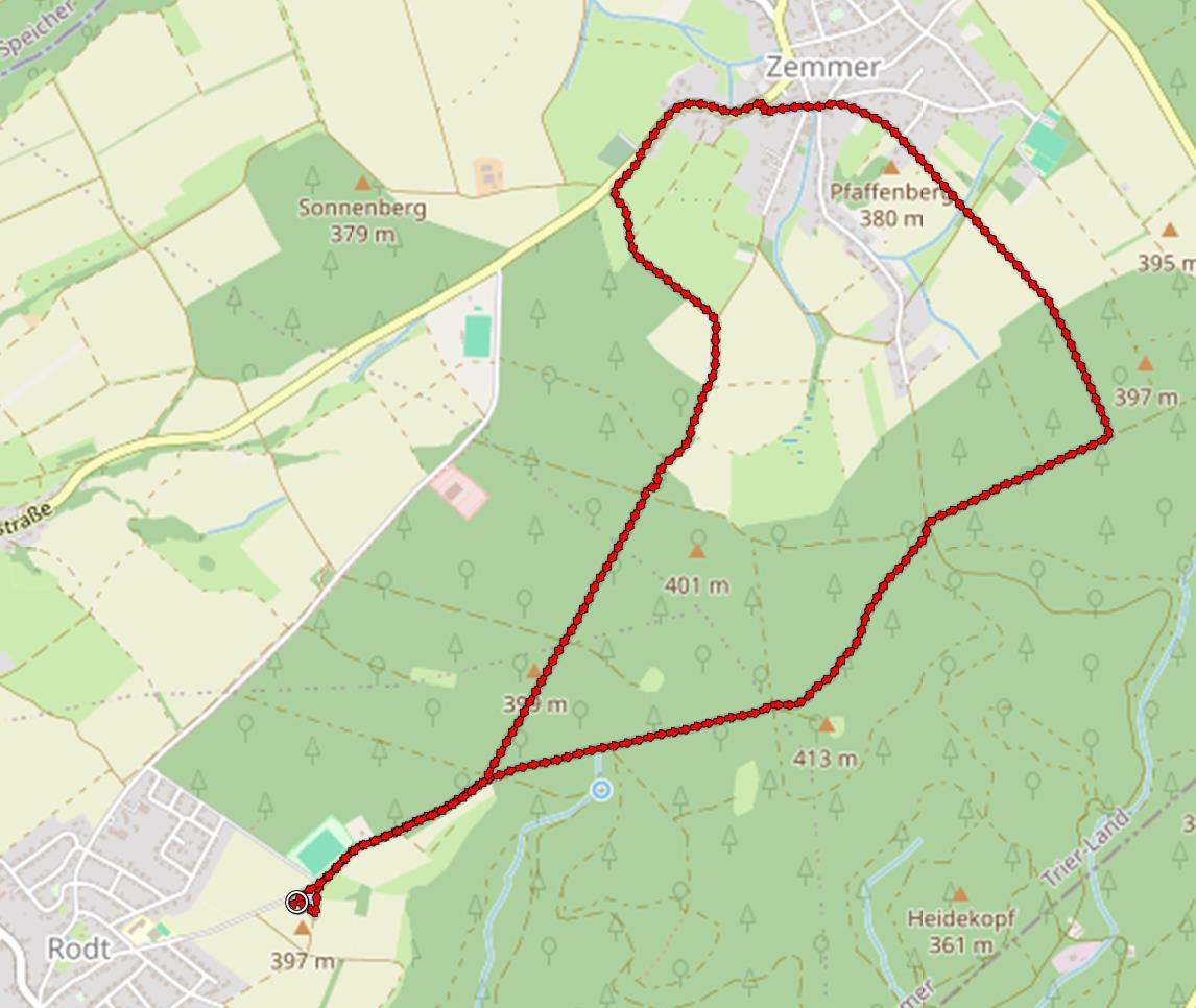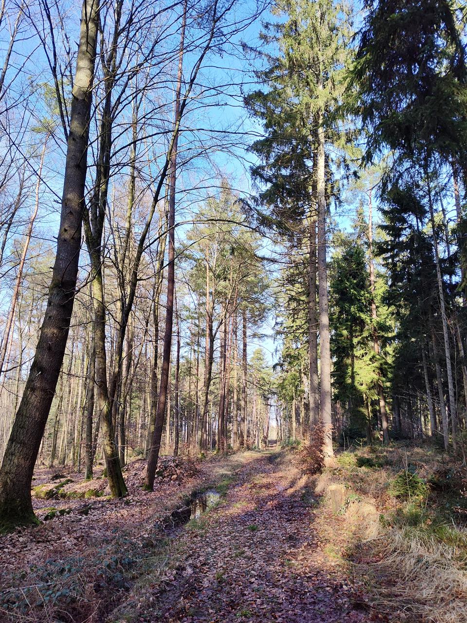 Dort parke ich mit dem Wohnmobil und unternehme mit Doxi eine zweistündige Wanderung durch den Wald zur Nachbargemeinde Zemmer.