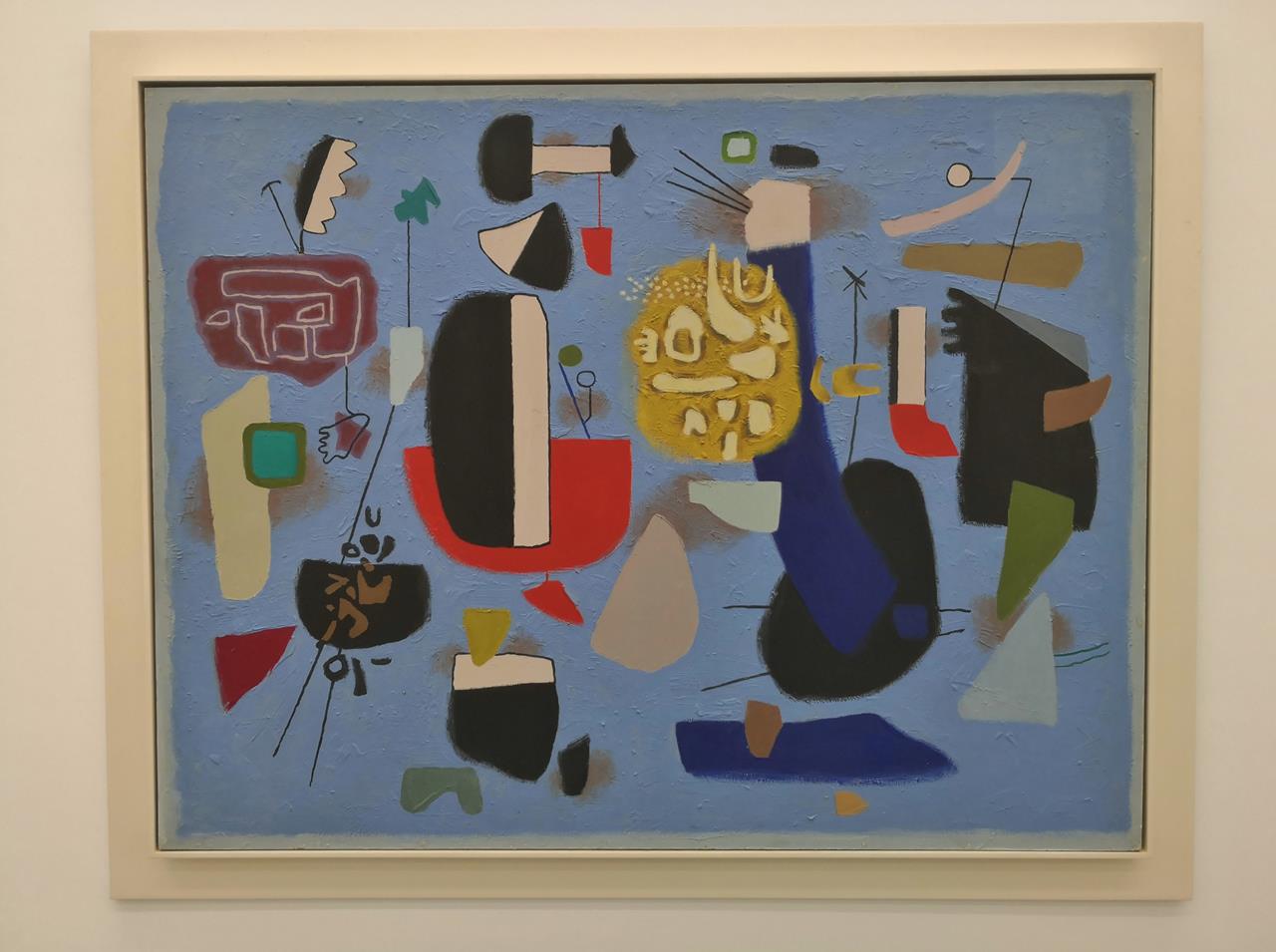 Und weil wir rund 20 Teilnehmer mit Kopfhören ausgestattet waren, konnte man sich zwischendurch auch einmal links und rechts vom Tross zusätzliche Bilder anschauen und dennoch weiter zuhören. Denn natürlich konnten auf der 80-minütigen Tour nicht alle ausgestellten Objekte besprochen werden.Viele große Namen der deutschen und europäischen Nachkriegskunst sind im MKM vertreten, teilweise gleich mit mehreren prominenten Werken, darunter Richter, Lüppertz, Penck, Arp, Baumeister, Dubuffet, Götz, Kiefer, Kricke, Nay, Vedova und weitere.