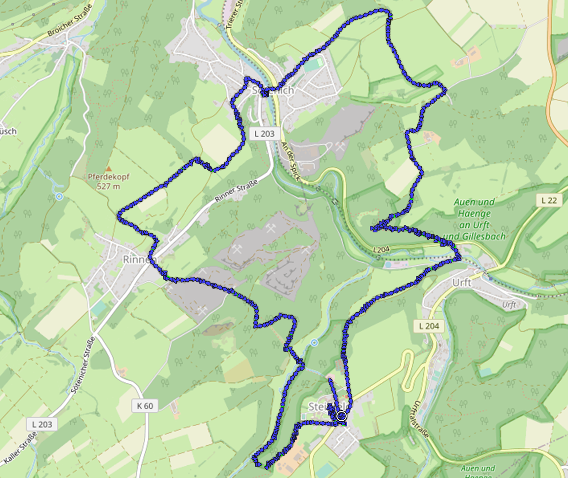 Wir kommen in das Naturschutzgebiet „Auen und Hänge an Urft und Gillesbach“ und beginnen unseren Abstieg Richtung Sötenich, wo wir nach 14 Kilometern Wanderstrecke und 500 Höhenmetern wieder an unseren Startpunkt zurückkehren.