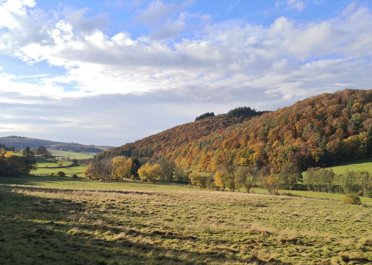 Ich bin zu einer kleinen Womo-Tour in die herbstliche Vulkaneifel aufgebrochen. Meine erste Station ist Kelberg, 6 km südwestlich des Nürburgrings. Der Ort liegt unterhalb des Hochkelbergs, einem ehemaligen Schichtvulkan und heute dritthöchster Berg der Hocheifel.