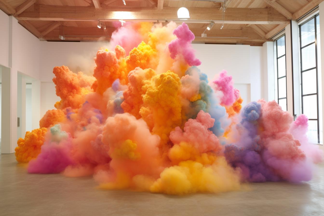 Neu aus der KI auf meiner Festplatte: Frisch imaginierte Installationen in der Art von Daniel Colen (*1979).