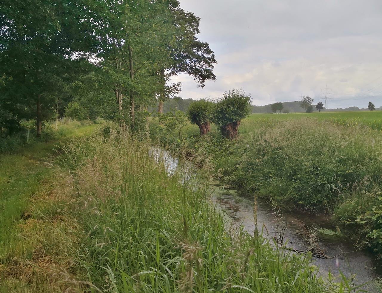 Vom See geht es ein Stück nordwärts durch den Kapellener Ortsteil Vennikel in den Lauersforter Wald. Am Nordrand des Waldes erreichen wir den sogenannten Aubruchkanal, dem wir bis ins Naturschutzgebiet Schwafheimer Bruch folgen.