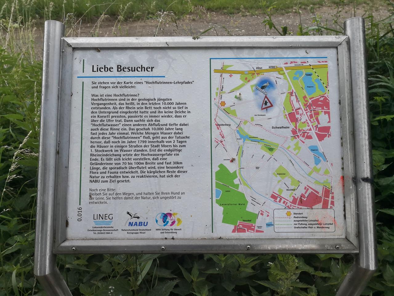 Darin liegt das Schwafheimer Meer, das auf eine frühere Überflutungsrinne des Rheins bei den jährlichen Frühjahrshochwassern zurückgeht. Die bis zu 30 km lange Rinne hat sich im Laufe von 10.000 Jahren immer tiefer in die Landschaft gegraben und nach der Begradigung und Eindeichung des Rheins im 20. Jahrhundert ein artenreiches Biotop hinterlassen.