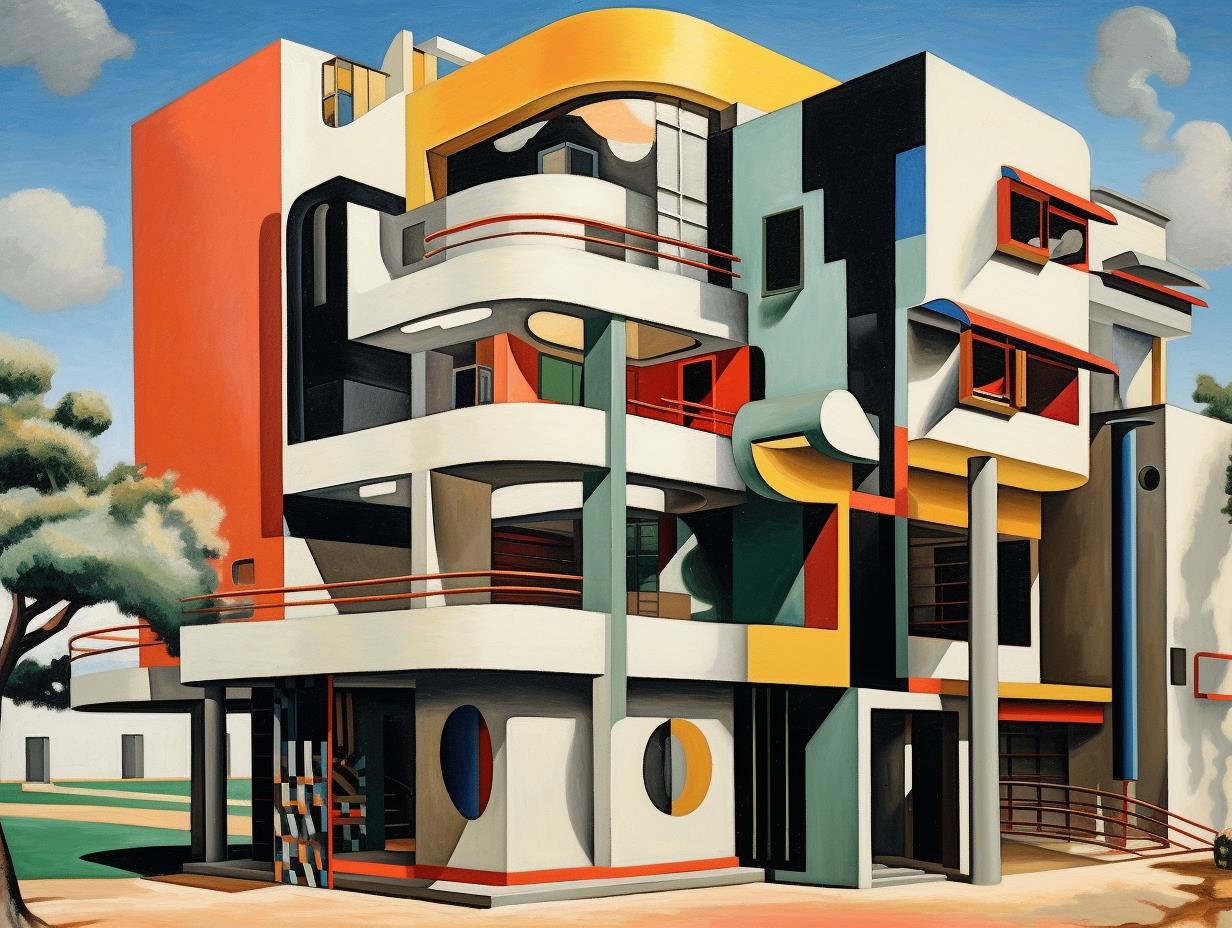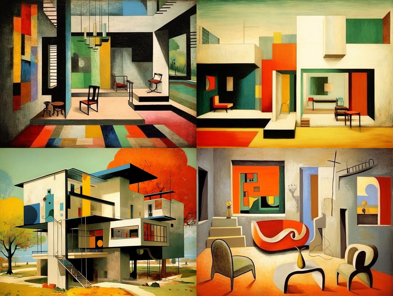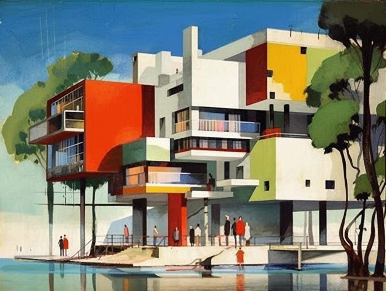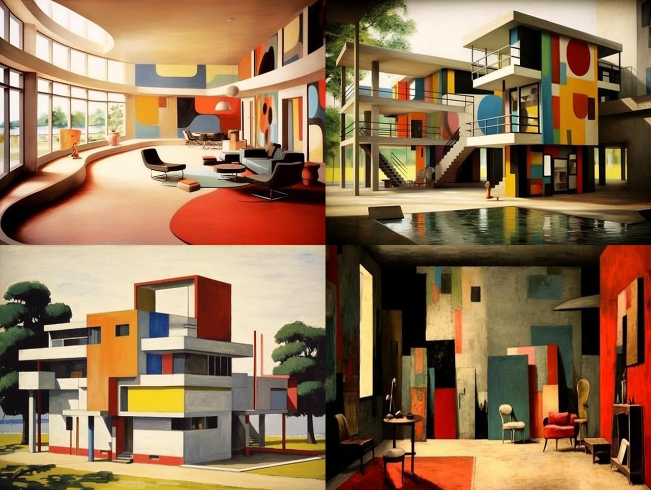 Neu aus der KI auf meiner Festplatte: Frisch imaginierte Kunstwerke in der Art von Le Corbusier (1887-1965).