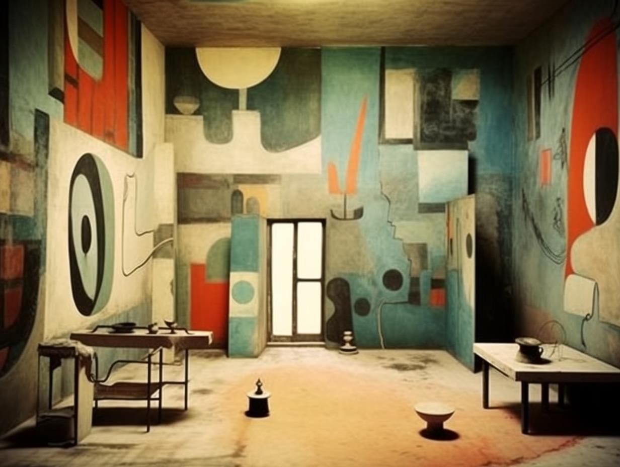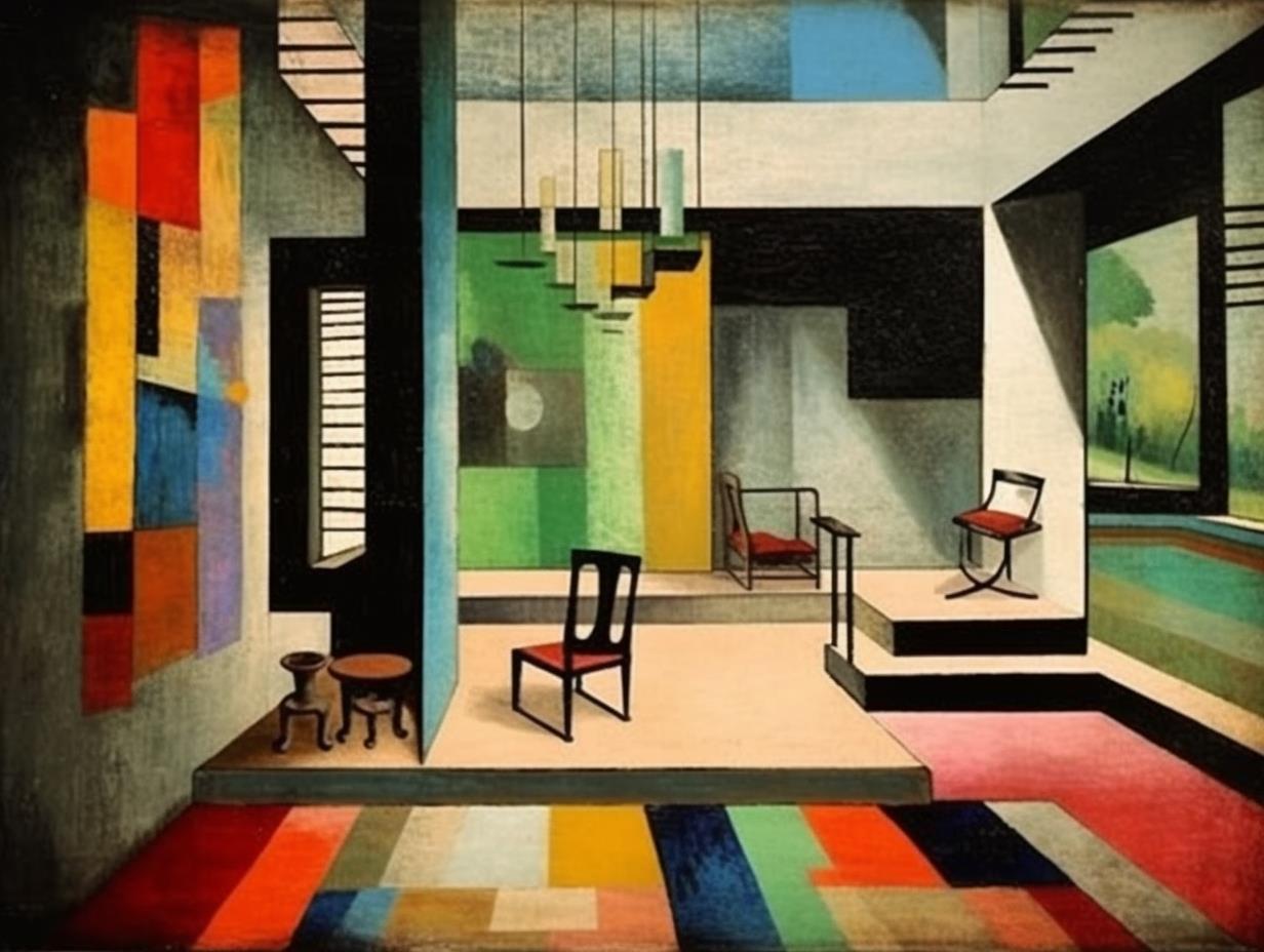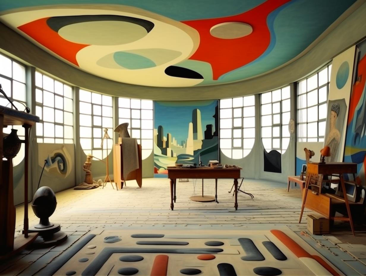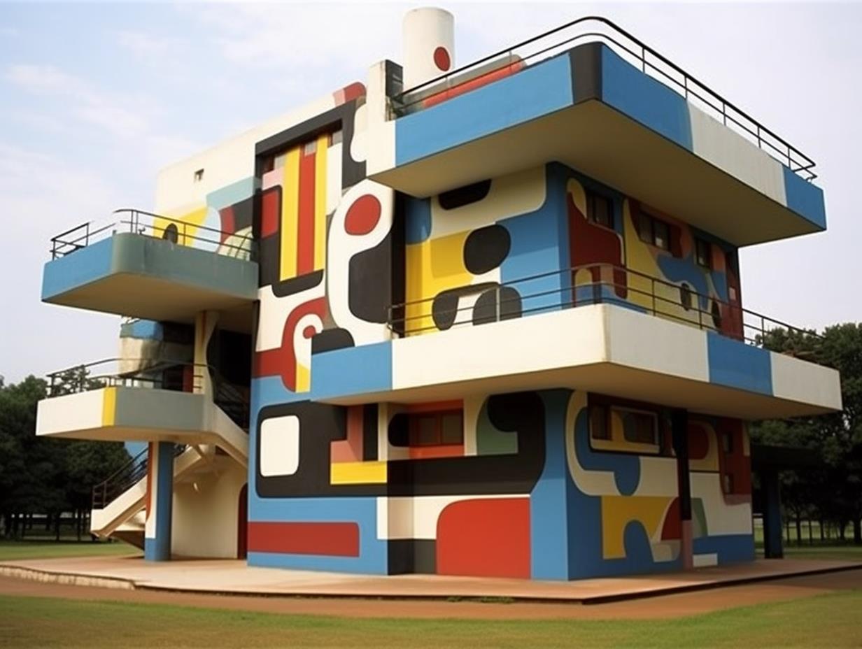 Neu aus der KI auf meiner Festplatte: Frisch imaginierte Kunstwerke in der Art von Le Corbusier (1887-1965).