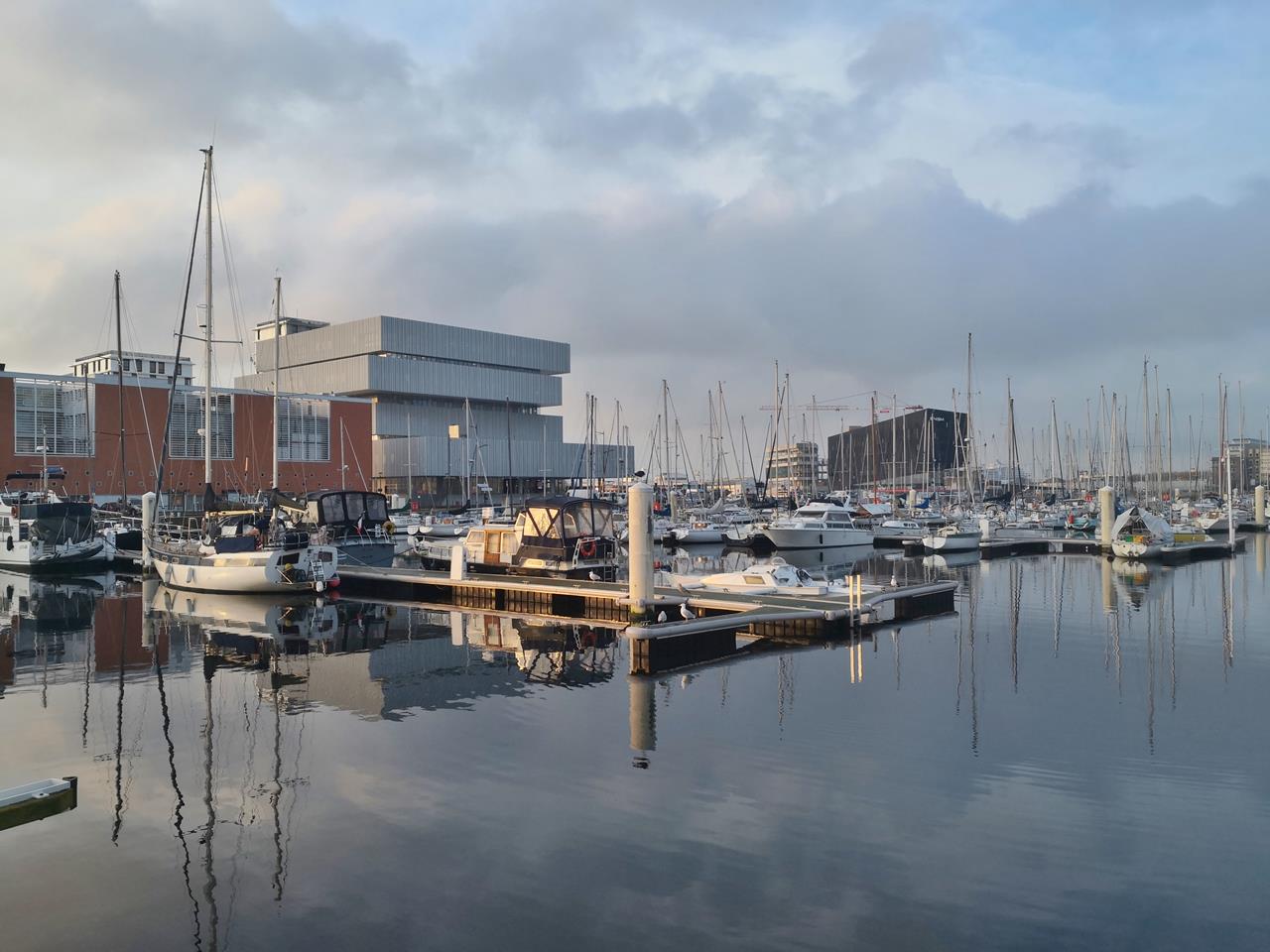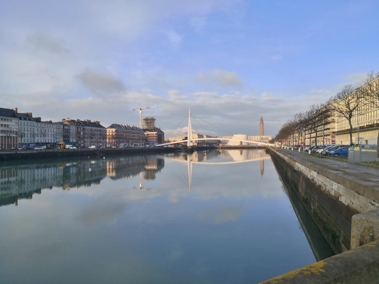Ein neuer Morgen in Le Havre beginnt ohne Regen, und bevor die aufsteigende Sonne wieder hinter Wolken verschwindet, streife ich mit Doxi noch einmal durch das Zentrum.