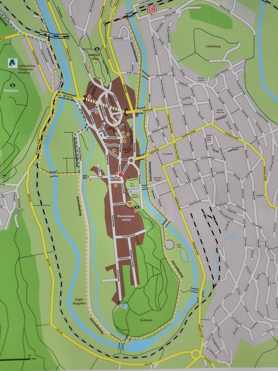 Ich kannte Arnsberg bisher nur als einen der sechs Regierungsbezirke von NRW, hatte aber keine Idee, wie die Stadt wohl aussieht. Und ich hätte nicht gedacht, dass die Stadt im Hochsauerlandkreis an einer natürlichen Schleife der Ruhr liegt.Sehr interessant ist die Altstadt von Arnsberg mit der Ruine des mittelalterlichen Schlosses und dem sich daran anschließenden „Klassizistischen Viertel“ aus dem Ende des 19. Jahrhunderts.