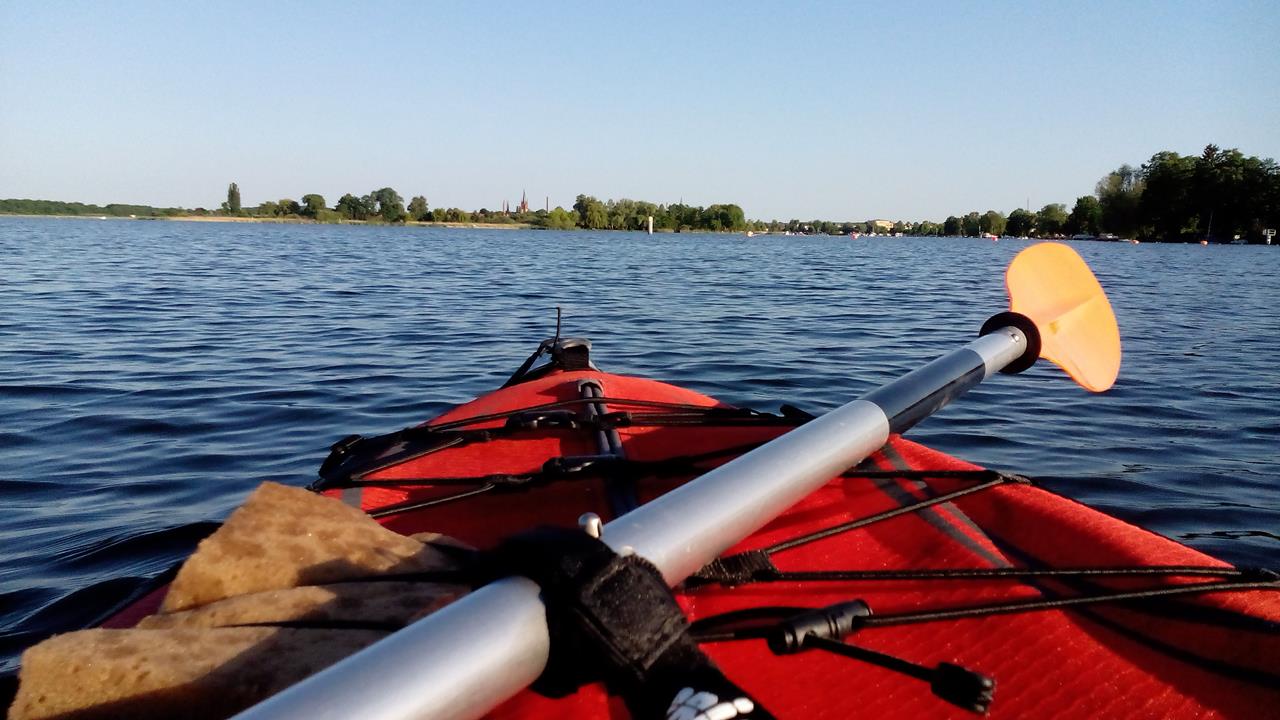 Werder ist von den Havelseen Schwielowsee, Glindower See, Großer Plessower See und Großer Zernsee umgeben, sodass man hier herrlich Wassersport betreiben kann. Gut, dass ich mein Faltboot immer dabei habe 🙂
