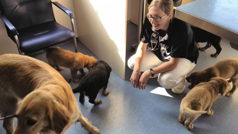 Heute waren wir mit den Welpen beim Tierarzt zur Blutabnahme, zum Chippen und zum Impfen. Bellis war auch dabei.