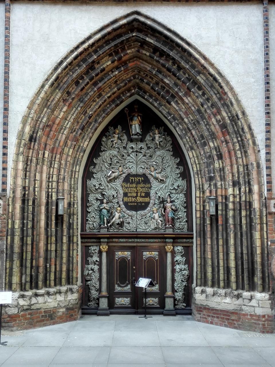 Portal der evangelischen Nikolaikirche direkt neben dem Rathaus