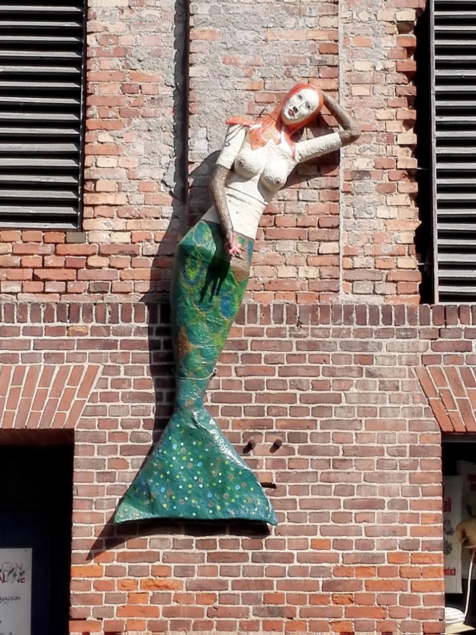 Meerjungfrau an einer Häuserwand im Hafen