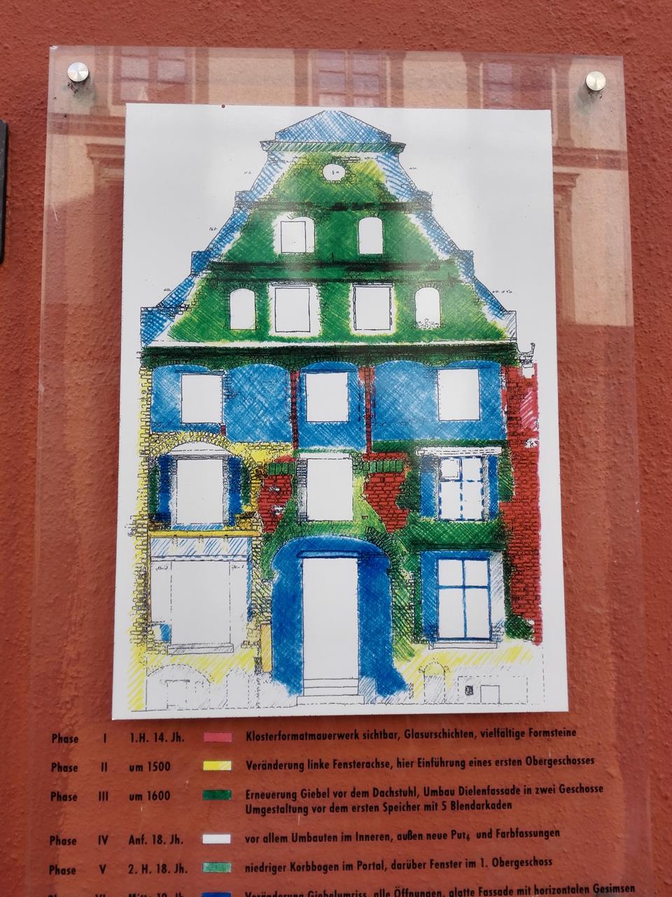 Farblich markiert: Die verschiedenen Epochen der Entstehung des Hauses auf dem vorangegangenen Foto