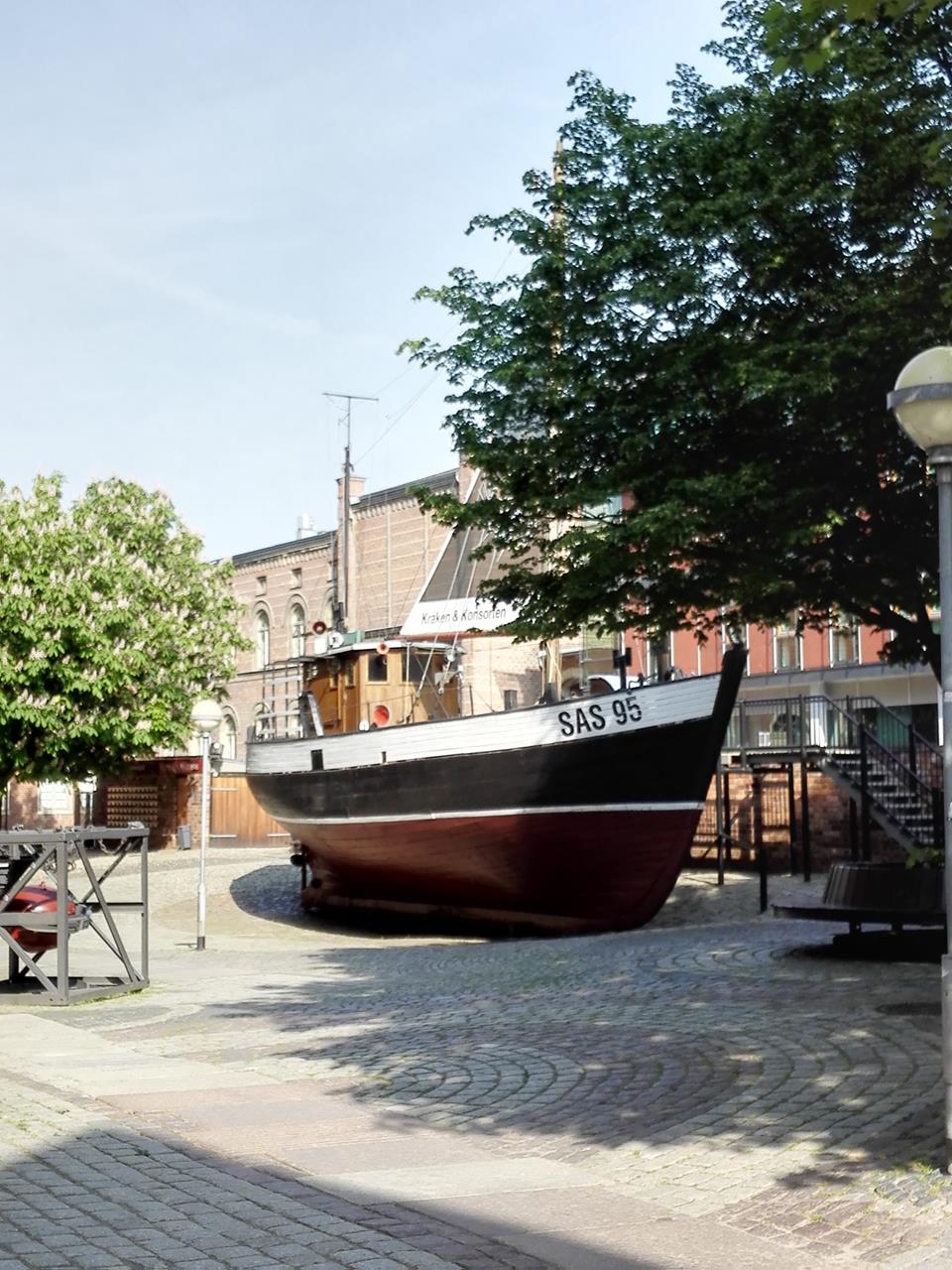 Aufgebocktes Fischerboot vor dem Schiffsmuseum