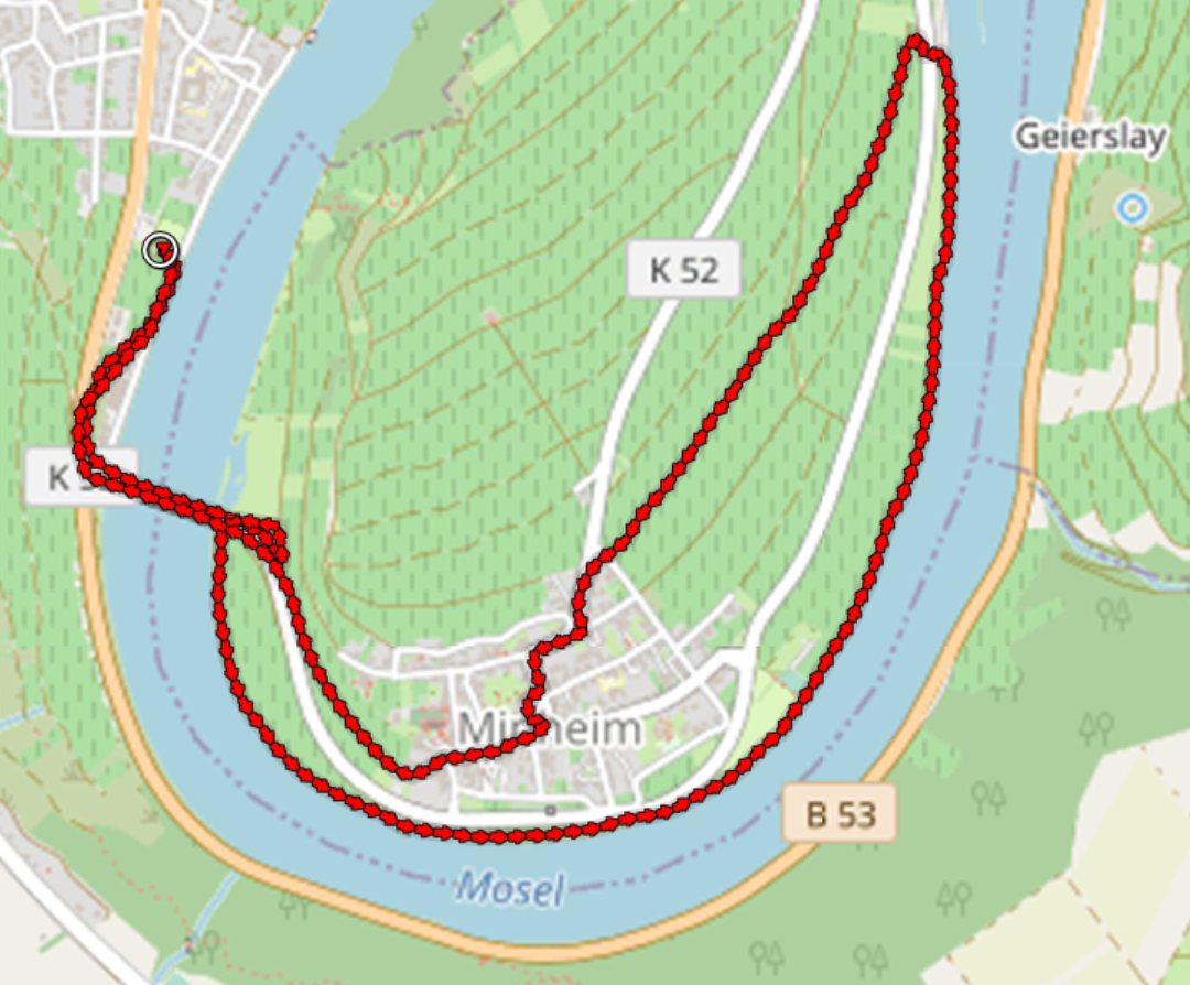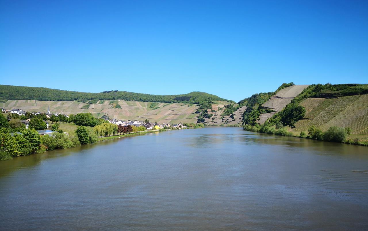 Am Morgen praktiziere ich erst einmal neben dem Womo ganz gemütlich Yoga und mache mich dann mit Doxi auf, um von Piesport in Richtung Wintrich zu wandern. Wir laufen am Fluss entlang nach Minheim und weiter bis zur Schleuse Wintrich, immer mit Blick auf die Steilhänge am gegenüberliegenden Ufer.