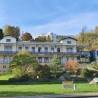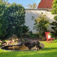Der Bach plätschert fröhlich dahin und leuchtet in der kräftigen Frühlingssonne tiefblau. Ein wunderbares Landschaftsbild.