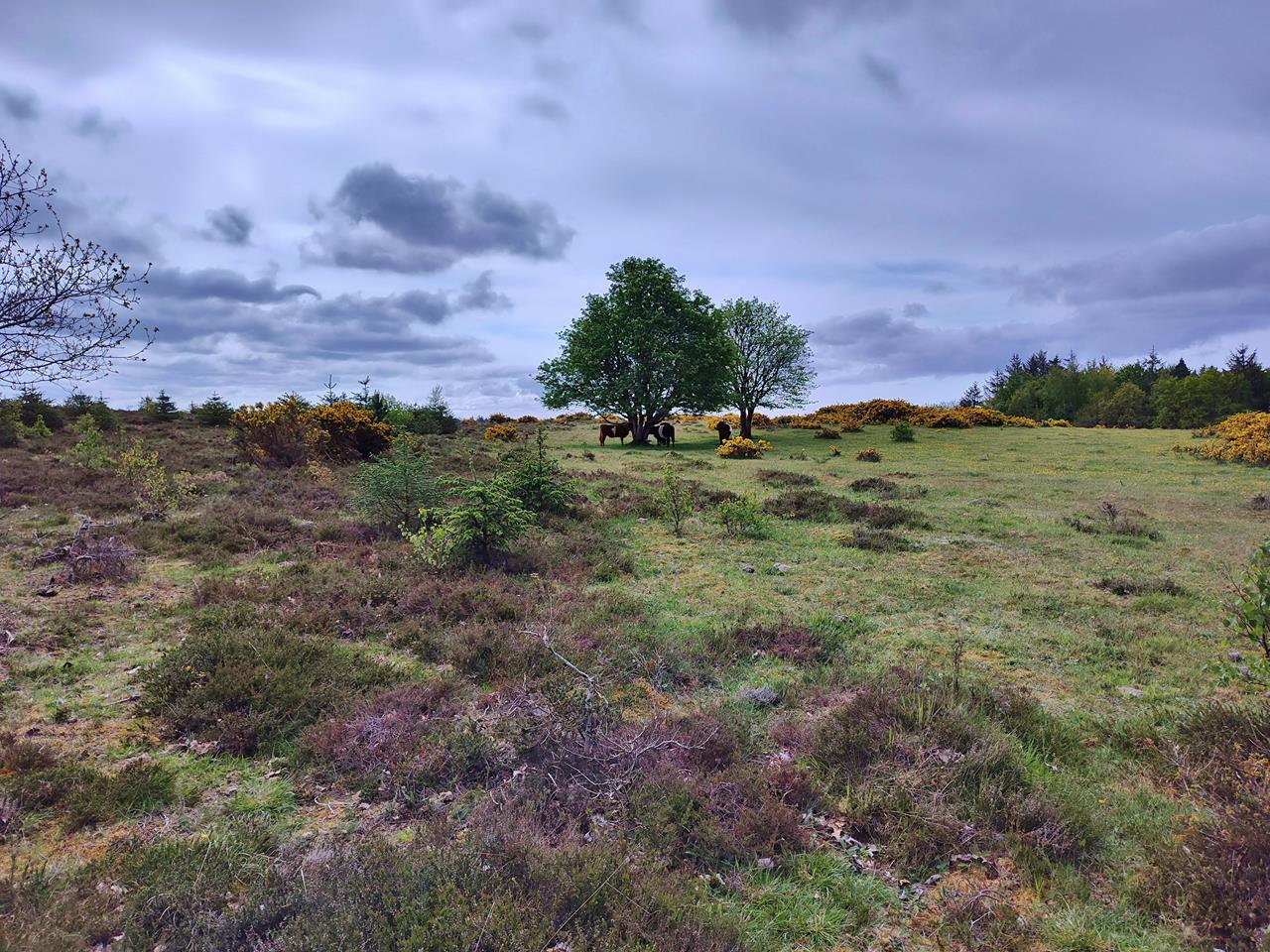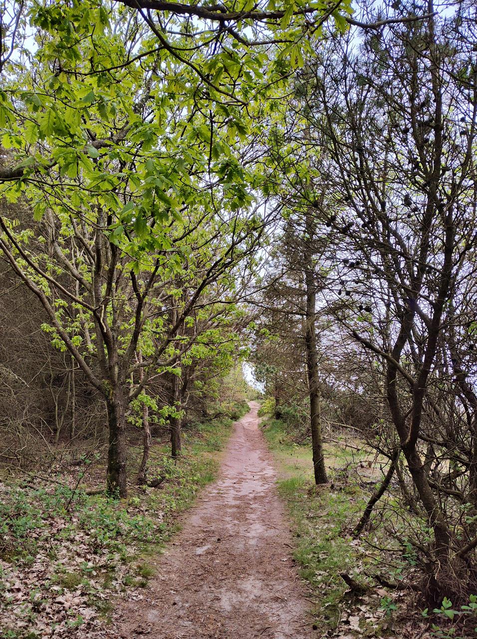 Später laufen wir ein Stück an der Wasserlinie parallel zum Strand, bevor wir das höher gelegene Heidegebiet am Guljeberg erklimmen. Am Übergang zwischen Heide und Wald kommen wir an einem vorzeitlichen Grabhügel vorbei.