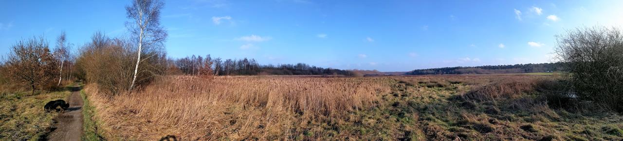 Nördlich des Waldes treffen wir auf den Segelflugplatz Limburg. Dahinter erstreckt sich das Leiffender Ven, das wir in Richtung des Rodebachs durchqueren. Nun sind es nur noch zwei Kilometer zurück zu unserem Startpunkt, den wir nach knapp drei Stunden und 13 Wanderkilometern wieder erreichen. Unsere Schuhe und Hosen sehen total verdreckt aus, aber egal. Das war wirklich eine schöne Tour.