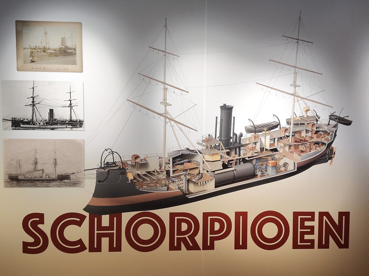 Neben einer umfangreichen Ausstellung zur Geschichte der niederländischen Marine vom Mittelalter bis in die Jetztzeit, wird im Außenbereich das Rammschiff „Schorpioen“ (dt: Skorpion) von 1868, sowie das Steuerhaus der früheren Lenkwaffenfregatte „De Ruyter“ von 1976 zugänglich gemacht.Auf der De Ruyter kam erstmals ein 3D-Radar zum Einsatz, das bis zu einhundert Ziele in einer Entfernung von maximal 400 km gleichzeitig erfassen konnte – eine niederländische Erfindung, auf die man bis heute stolz ist.