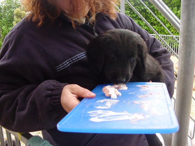 Heute haben wir die Kleinen zum letzten Mal entwurmt. Die Entwurmungspaste mit Leberwurst vermengt – eine wahre Delikatesse! Auf einem kleinen Tablett schön angerichtet, für jeden Welpen eine Partition 😉 So lecker, dass sich einige gleich über zwei Portionen hermachen wollten. Läuft aber nicht! Der Küchenchef hat abgezählt.