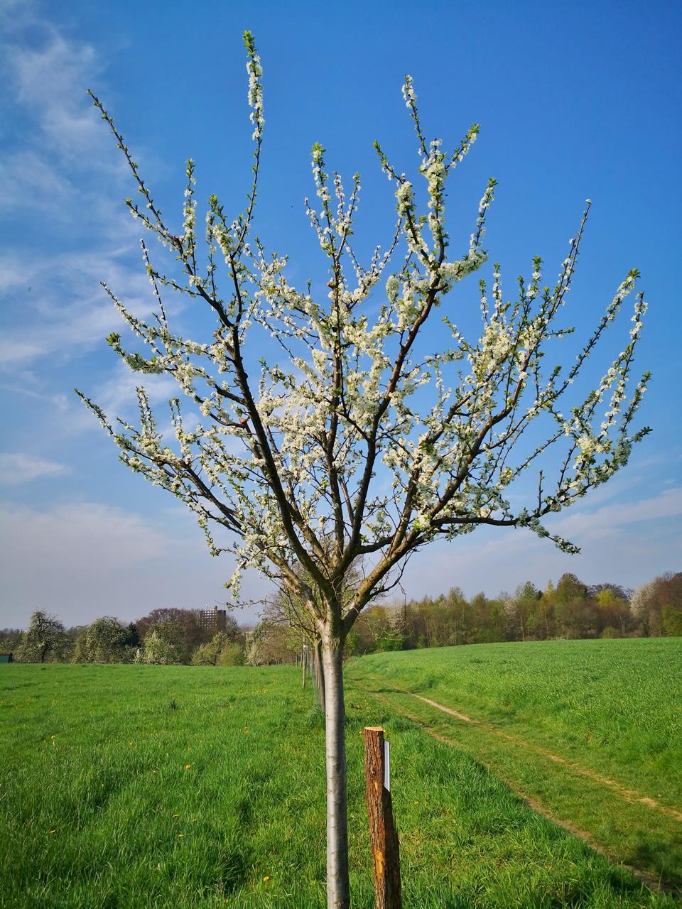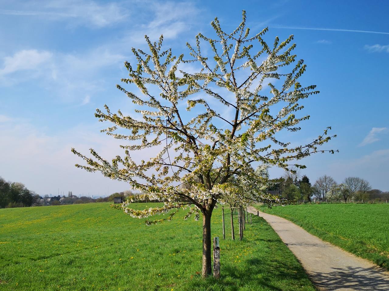 Eigentlich wollte ich im Anschluss noch den Leichlinger-Obstbaumweg laufen, der sich nur wenige Kilometer weiter nördlich erstreckt. Aber das spare ich mir auf, bis auch die Apfel- und Birnenbäume blühen. Lange kann es nicht mehr dauern. Ich schätze, in ein bis zwei Wochen ist es soweit.