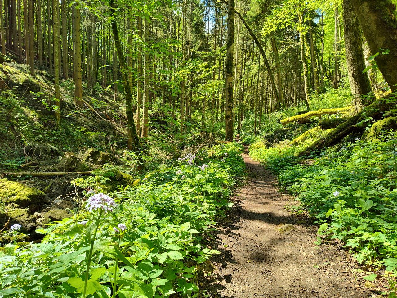 Anfang Januar war ich zum ersten Mal zum Wandern in der bezaubernden Schönecker Schweiz unweit von Prüm in der Westeifel. Damals war es winterlich grau und die Laubbäume kahl. Vier Monate später bin ich wieder hier und nun ist alles erblüht und ergrünt.