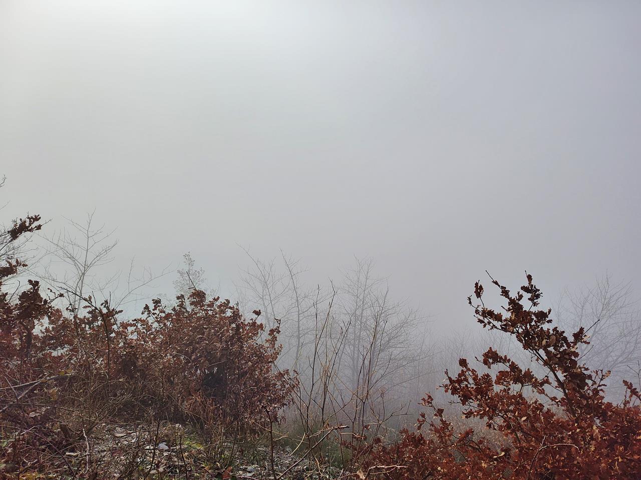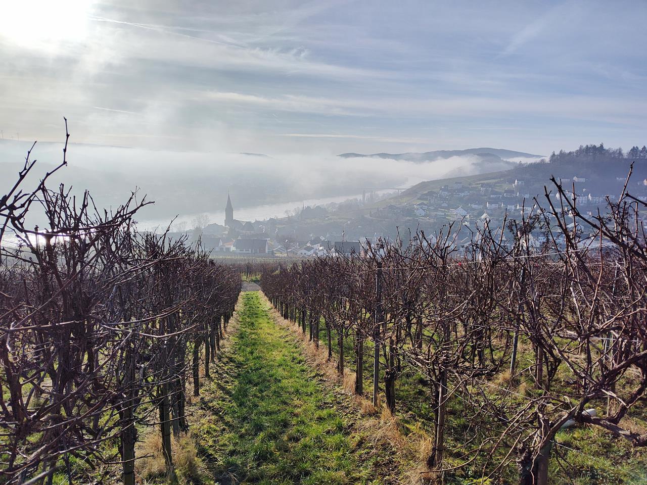 Endlich verzieht sich der Nebel – Blick aus den Weinbergen hinunter nach Lieser