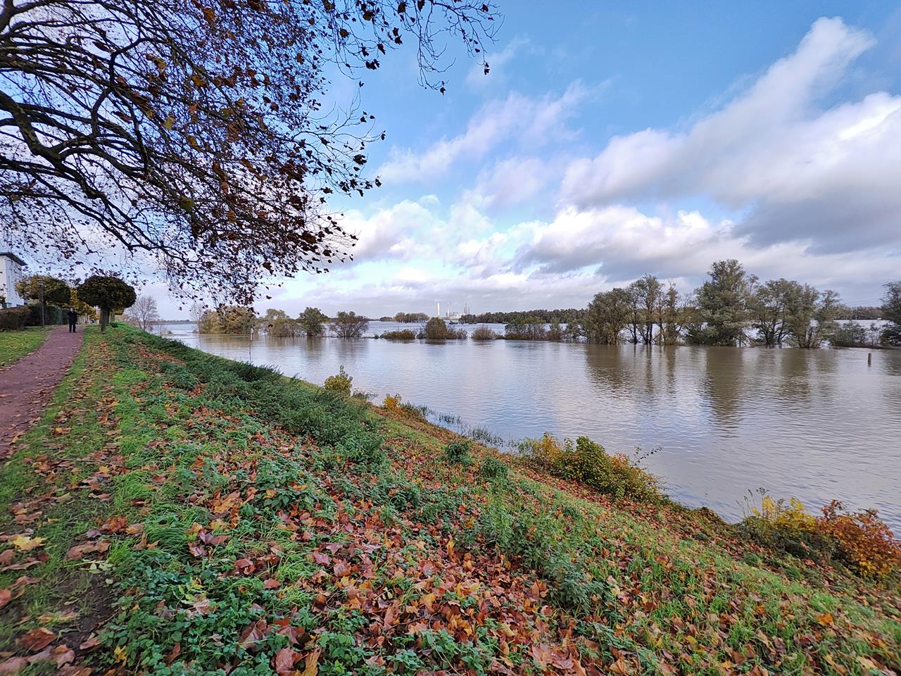 Das Rheinhochwasser steigt weiter. Bald werden die ufernahen Wege komplett überschwemmt sein.